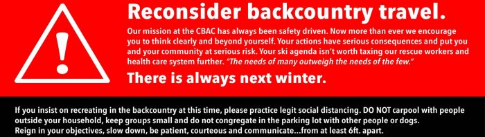 2019/2020 End Of The Season Spring Travel Advice: Issued 4/20/20 by CBAC staff