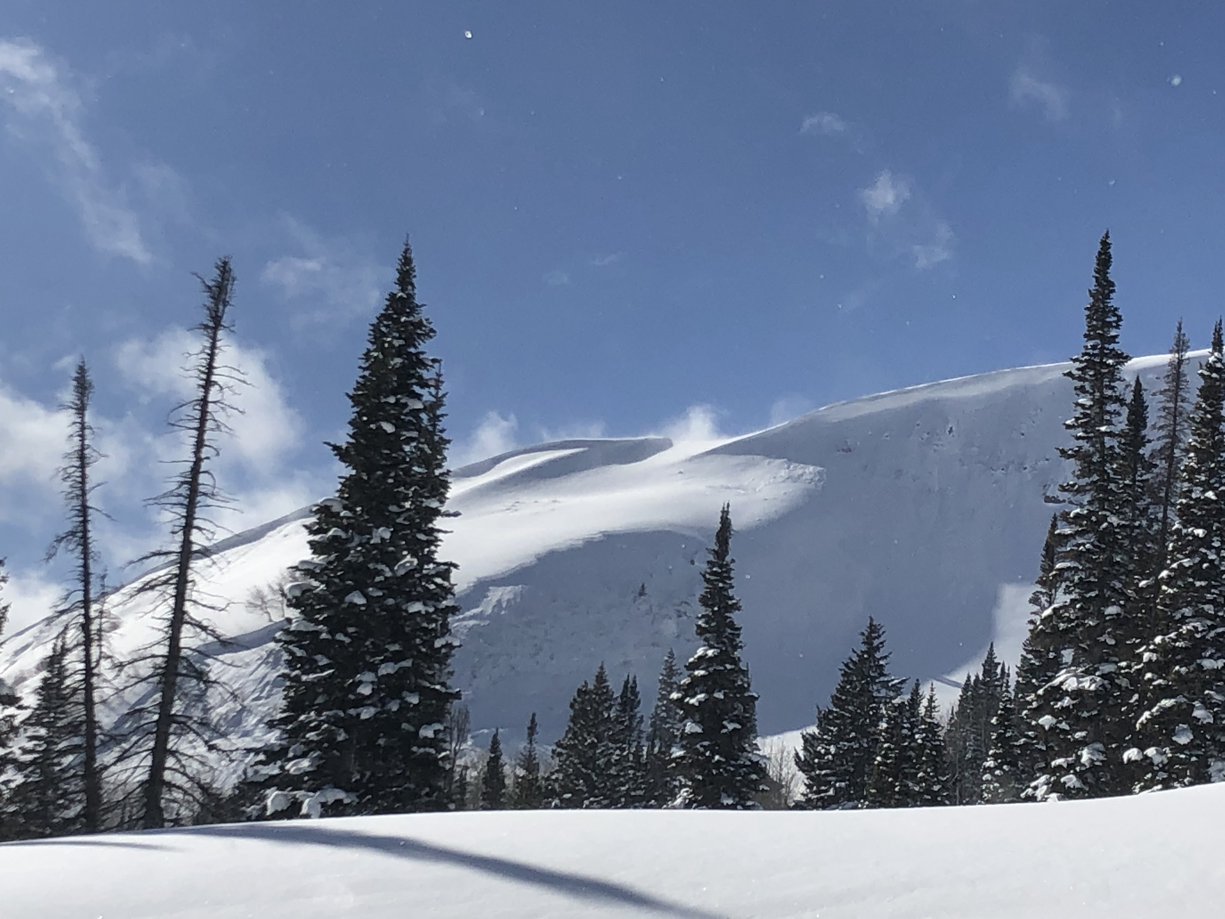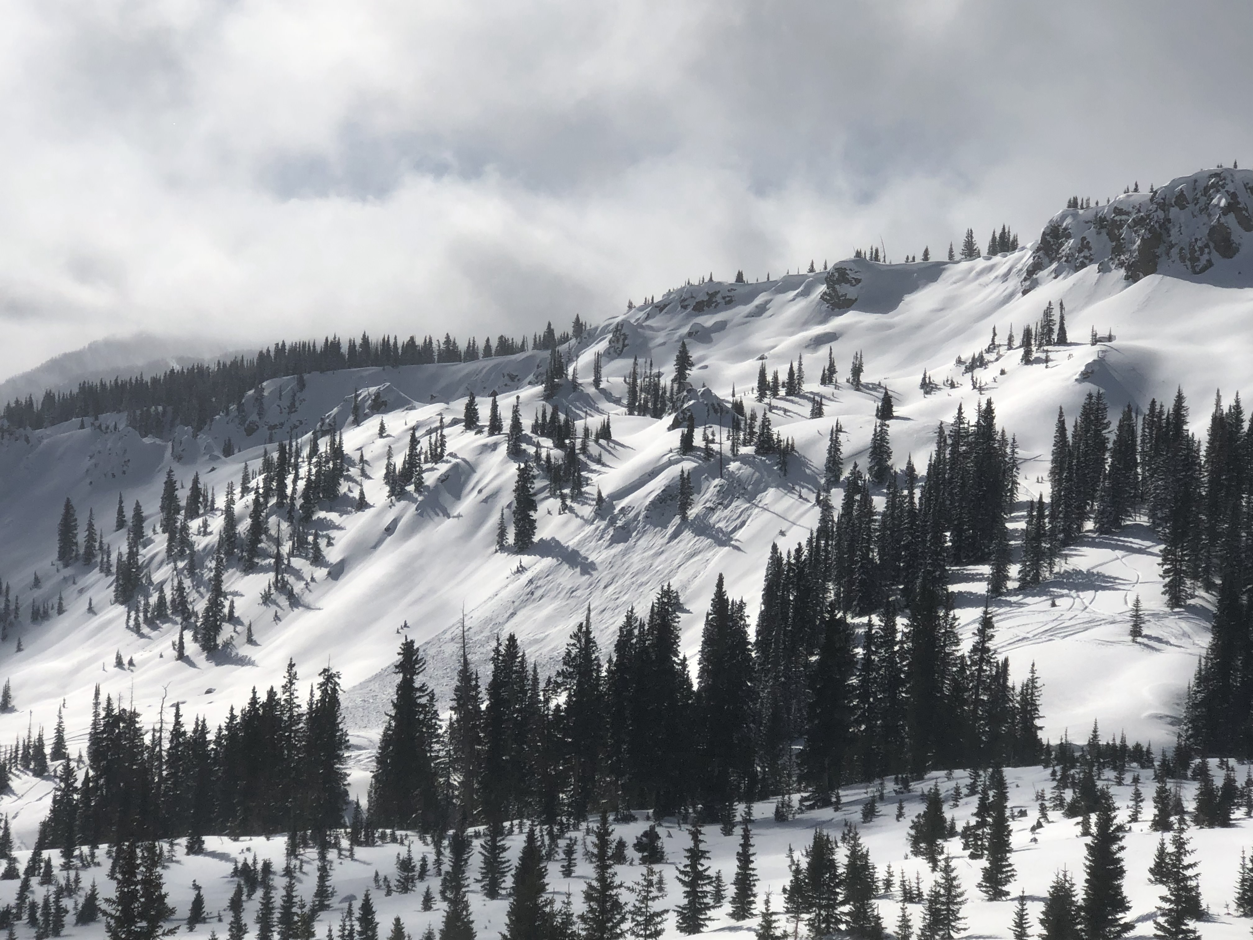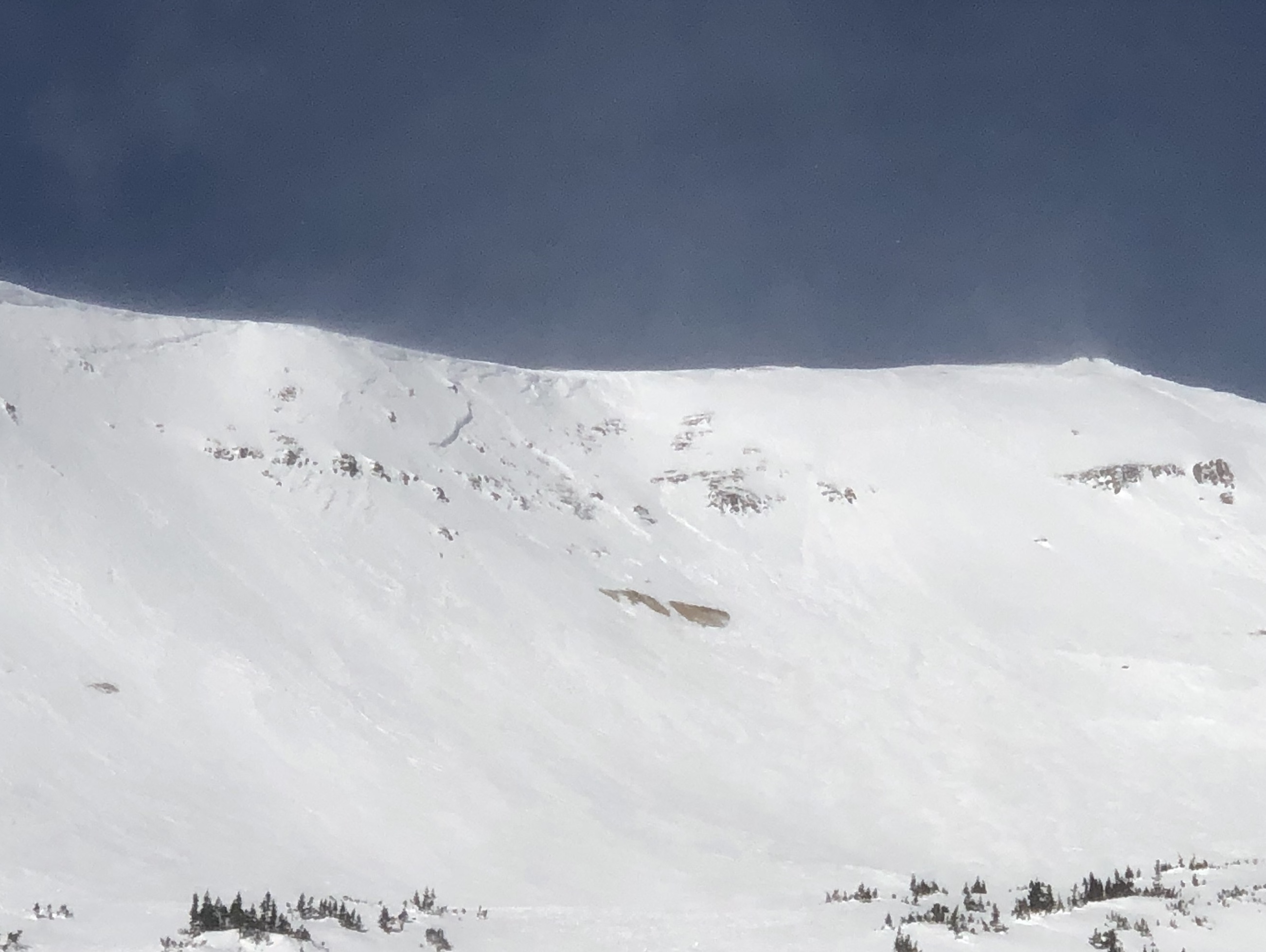 Skier triggered avalanche on Mount Baldy south bowl. It was triggered midslope; skier caught and carried into the basin. Skier deployed airbag and was not fully buried and was not injured. Crown estimated to be 1 to 2 feet thick.
