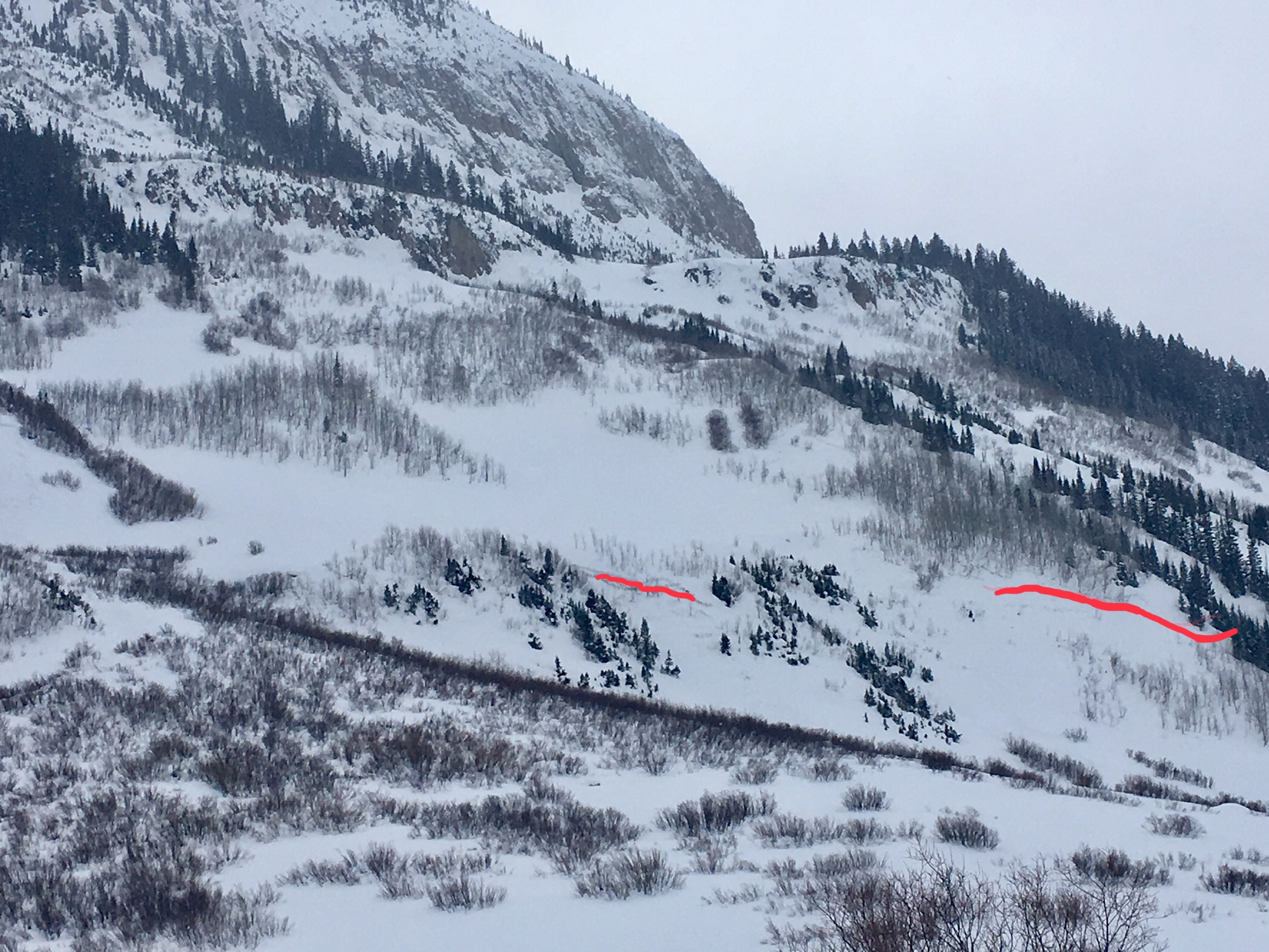 We did not observe avalanches today, but saw several size 1-2 pockets on steep convex slopes on east through northeast aspects that probably ran early in the week. Additionally, one larger avalanche on the north side of Mt. Gothic looked to be 4-5 days old (Size 2-3). Our groups experienced several large collapses while traveling in the valley bottoms as well as on west facing slopes. No shooting cracks were observed. Our group skied short slopes up to 25 degrees.