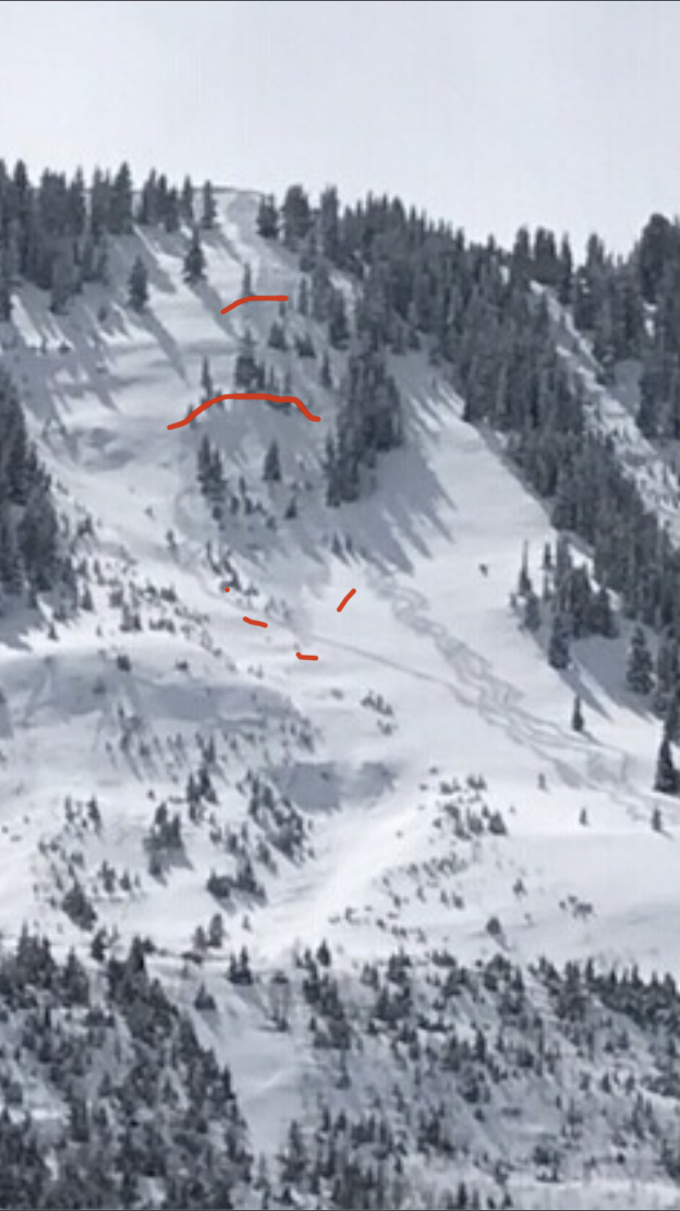 R1.5D1.5 on larger convexity just below approx 10.8k that broke more like 3 smaller slabs as skier cut across the roll. Confined to storm snow. 18” deep and 200ft wide. Not enough to bury but definitely enough to carry and rake an unsuspecting skier through terrain features… Debris ran around 400 vert.