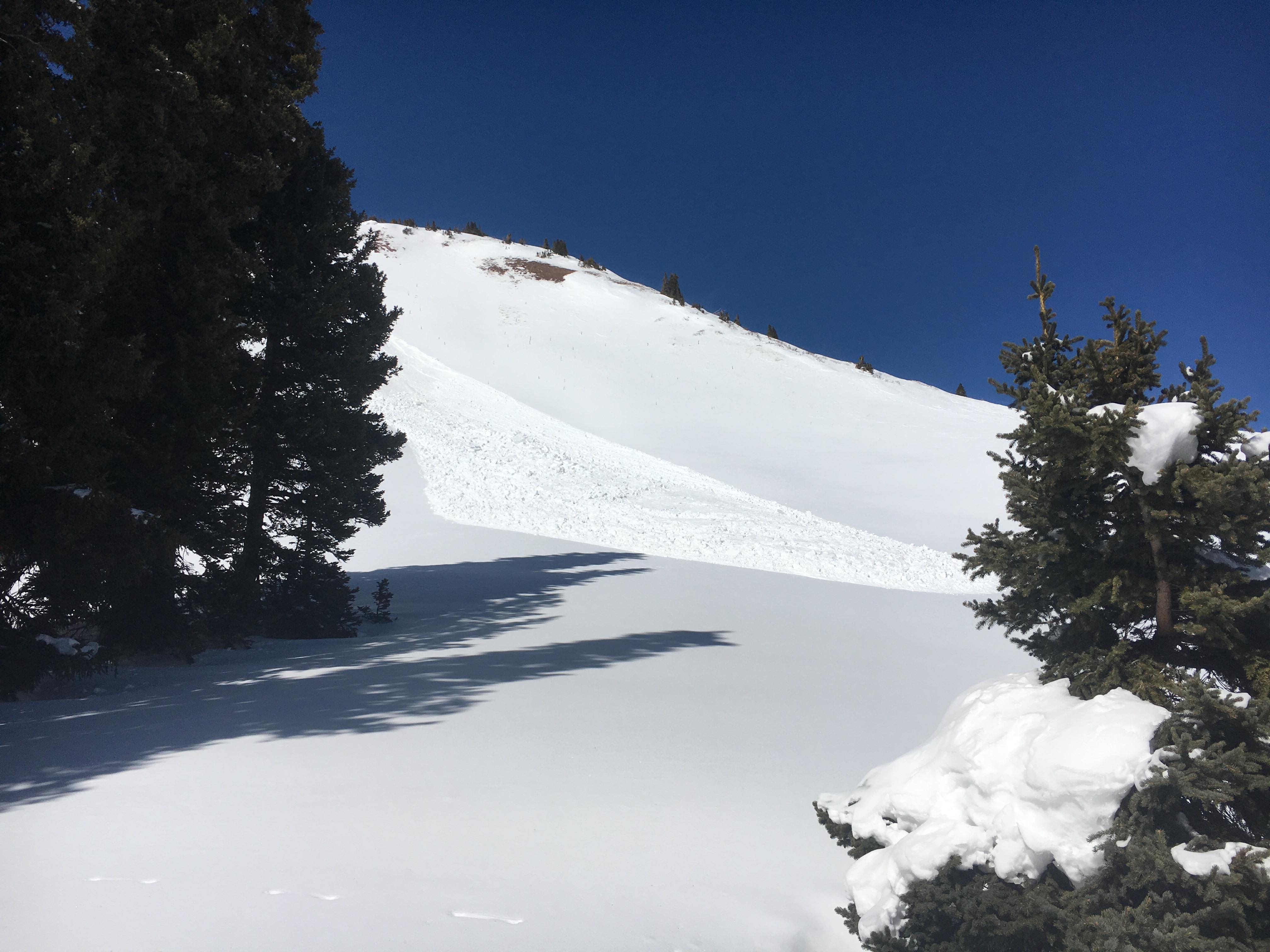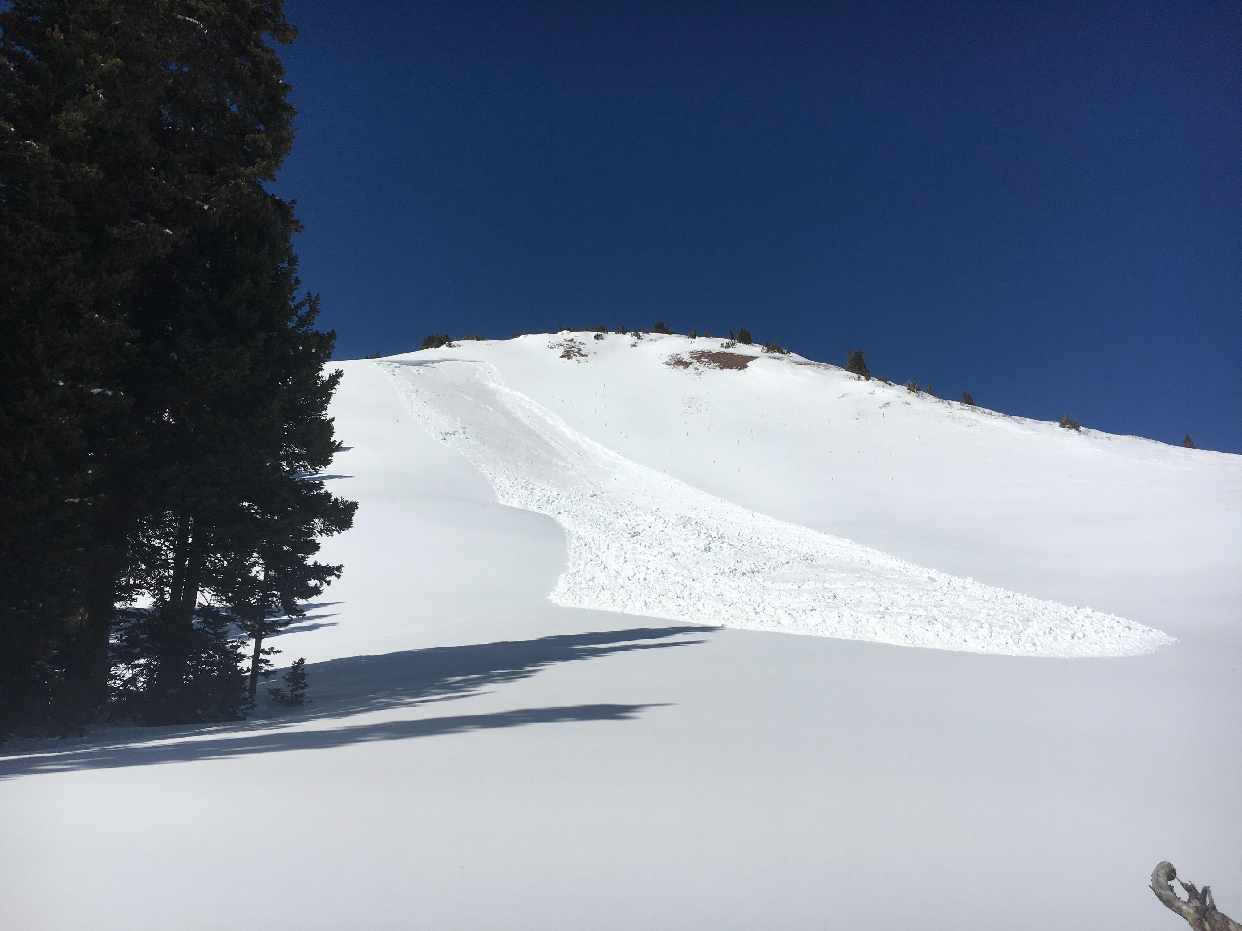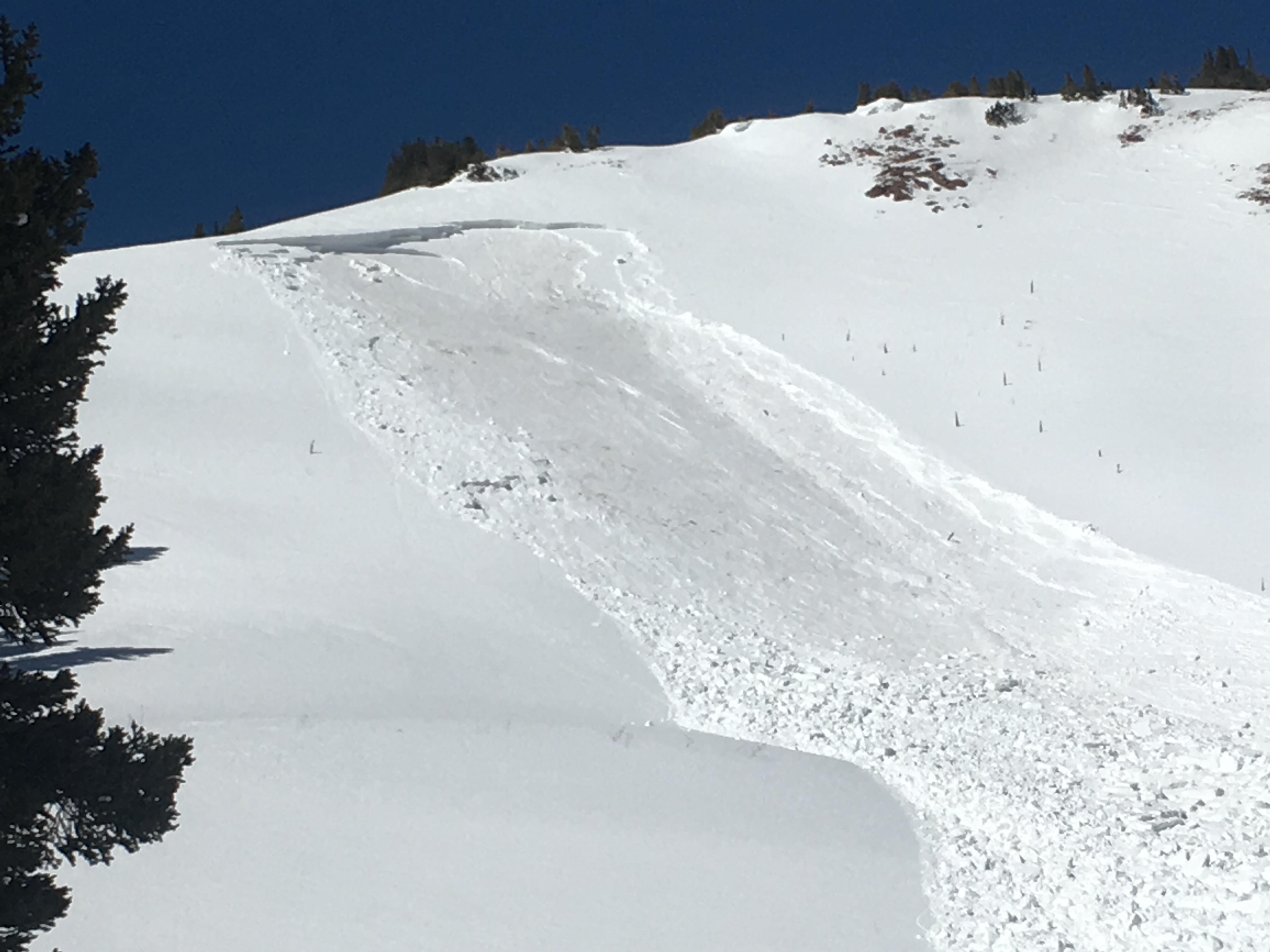 “Slide was on a SE aspect. We triggered it from the flat deck that the first photo showing only bottom of the slide is taken from. About 300 yards from the crown which was 4’ish. I’d say r2 d2. It ran the first half of its path but couldn’t get over the flat to get to the second half. Three sleds had ridding to the trigger spot and when the fourth got there we felt a giant whumph. Really good example for us on how just because one person (or3) doesn’t trigger doesn’t mean it won’t happen.”
