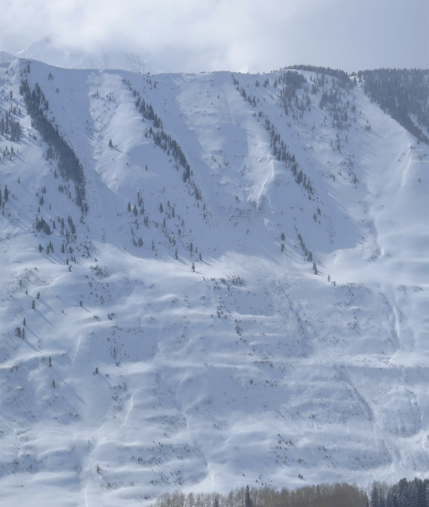Another fresh very large avalanche was viewed on billy bar’s Camara near Schofield Pass. This avalanche failed on a cross-loaded SE facing slope above treeline, and propagated widely across a more south facing bowl.