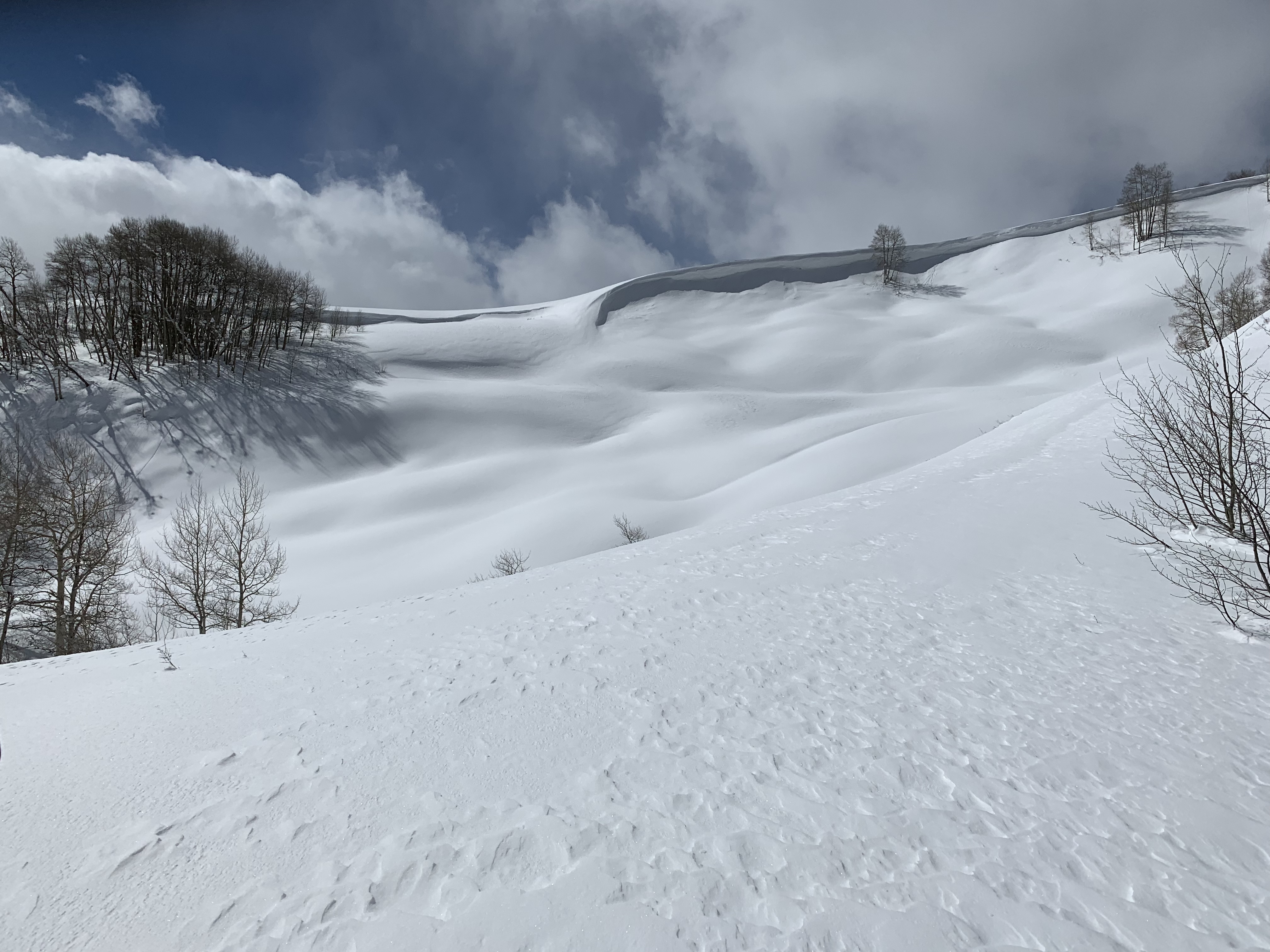 Snowpack: Windloaded and heavily corniced.