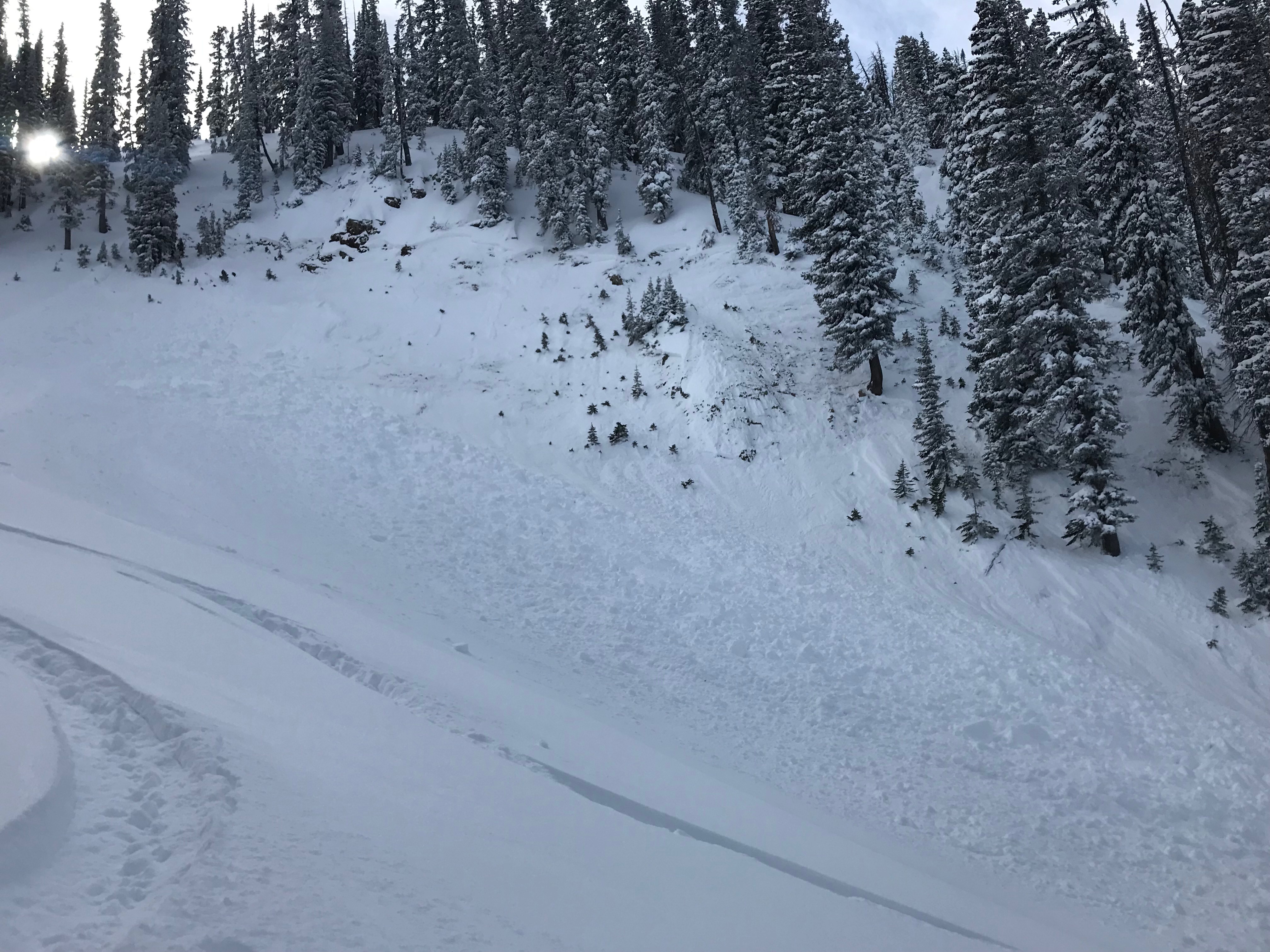 Checked out the Augusta avalanche reported after the Christmas Storm. In a pit below the crown about 100ft and off the left side of its flank the HS was about 60cm’s. Basically, the Christmas Storm was sitting on the 12/23 wind event and denser snow, down to the ground. Any previous snow was poorly distributed through the rocky terrain. ECTN at this interface on small decomposing grains. The Augusta natural avalanche appeared to fail on this interface and not at the ground. The avalanche size was an R1 in the terrain, while debris where difficult to map as the snow surface has blown back over and been blended back in.
