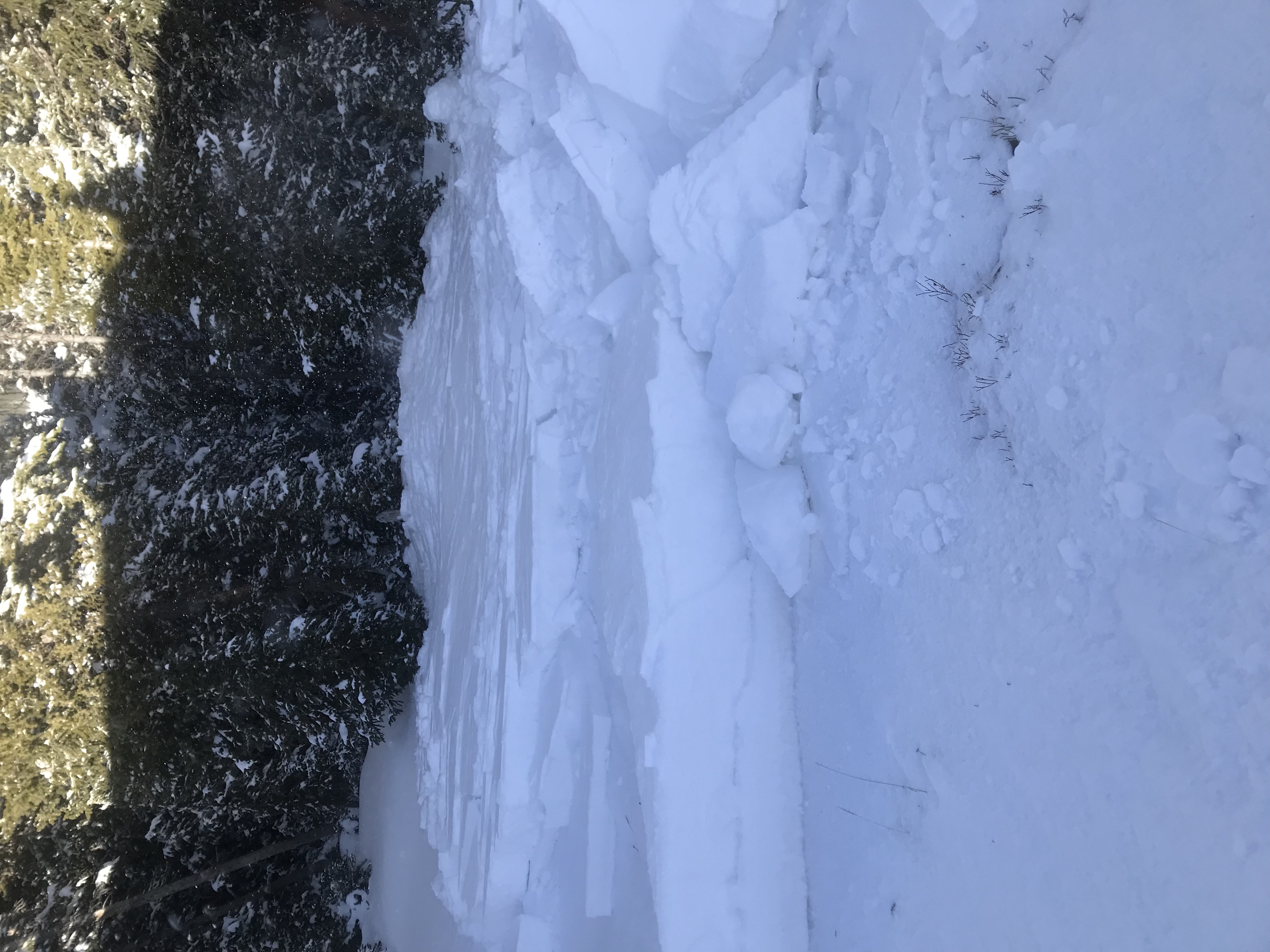 Turned around on one ENE facing slope that was a small roller in the terrain. As the snowpack doubled in hight with very weak snow below stronger snow….