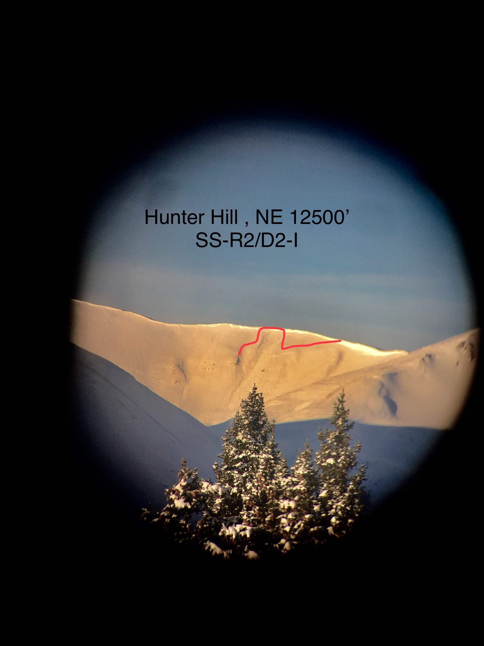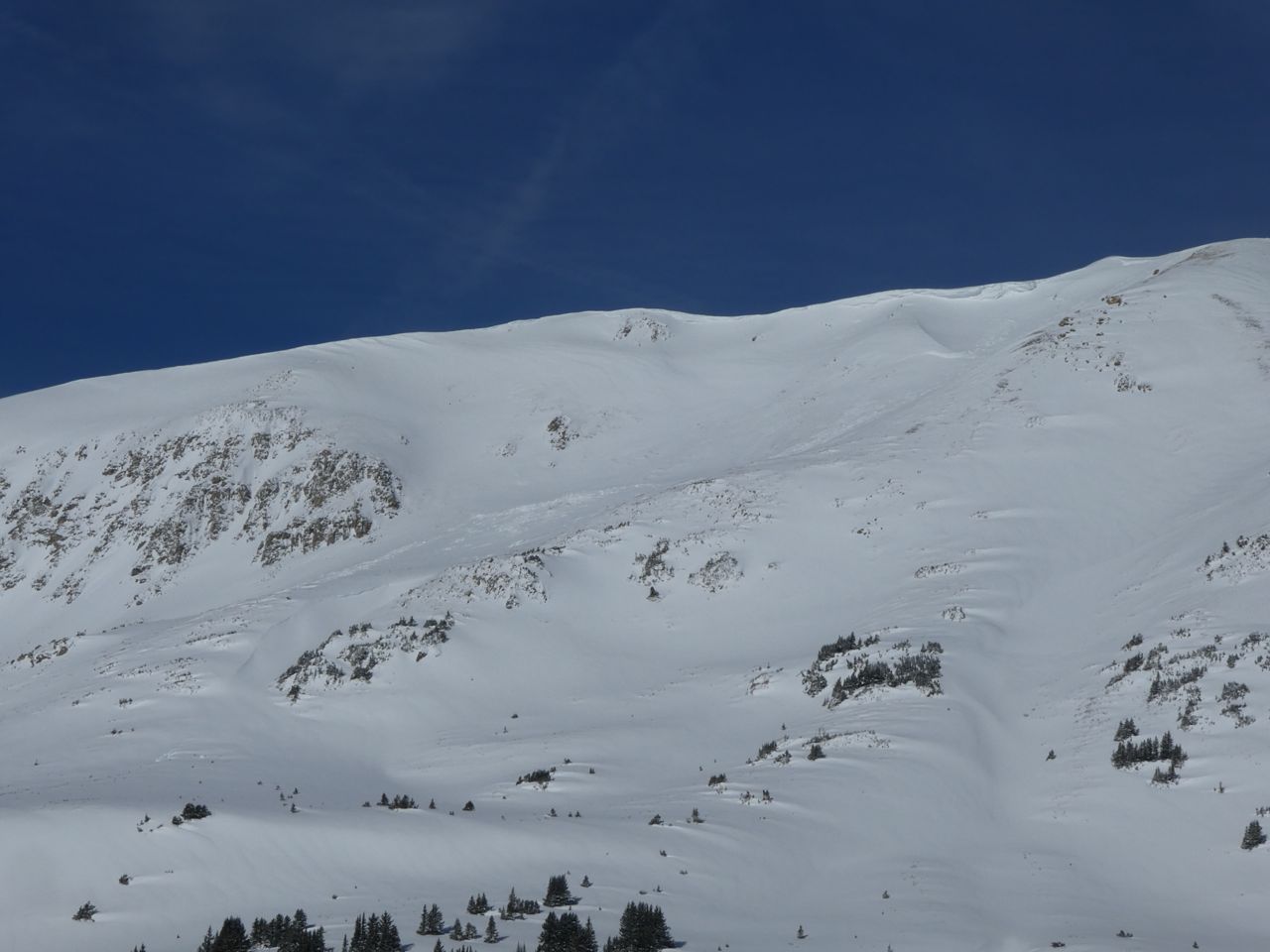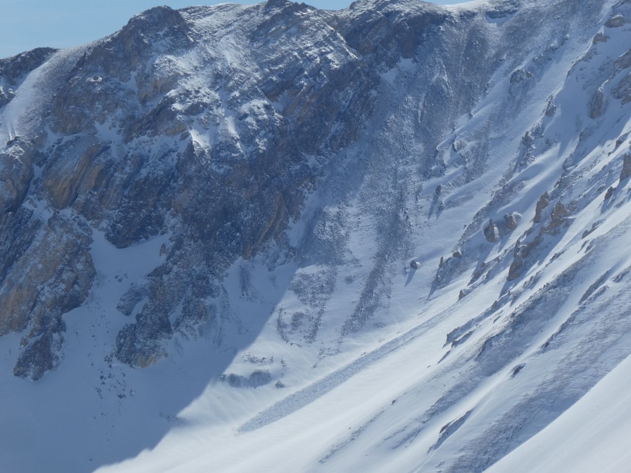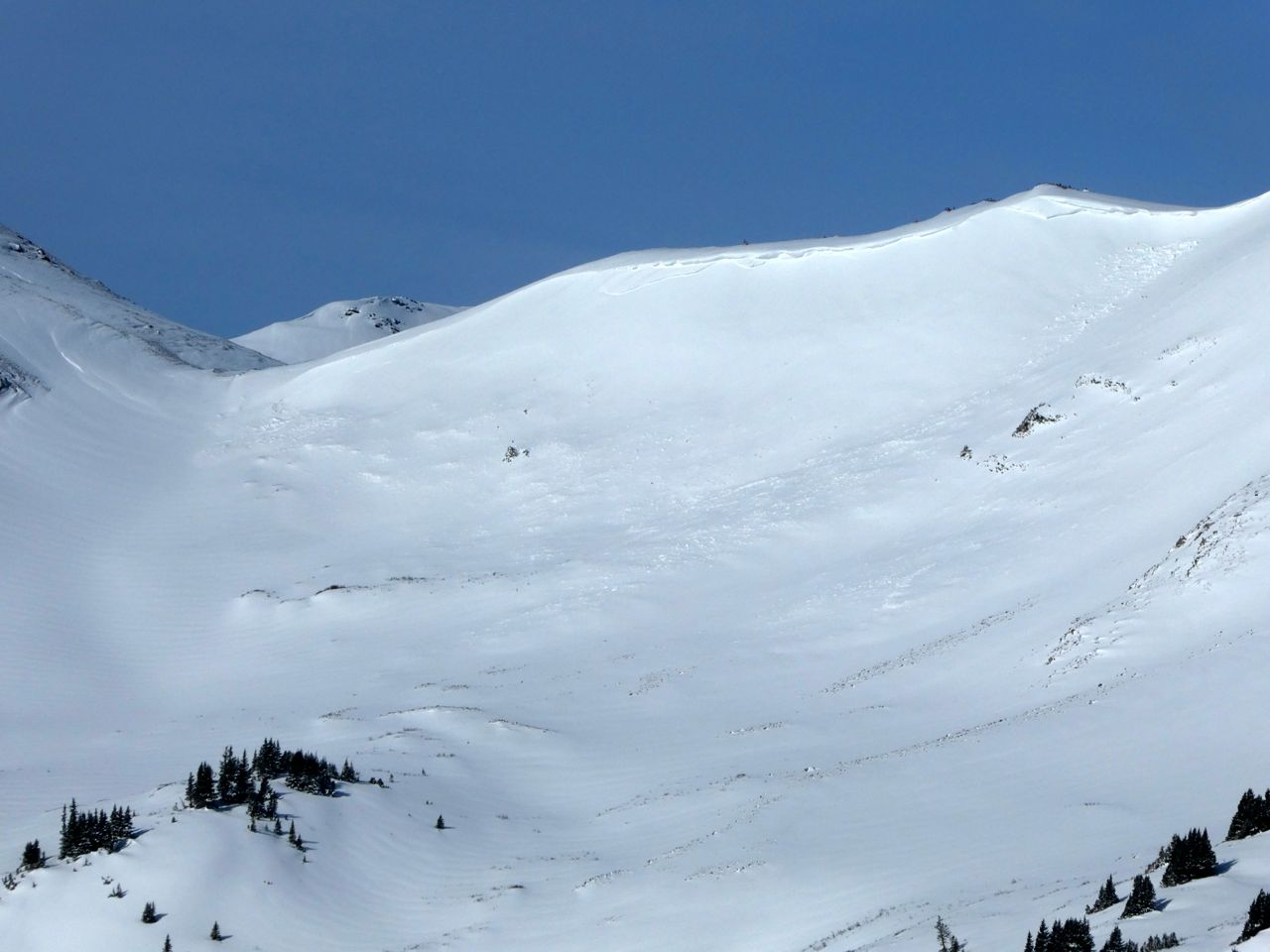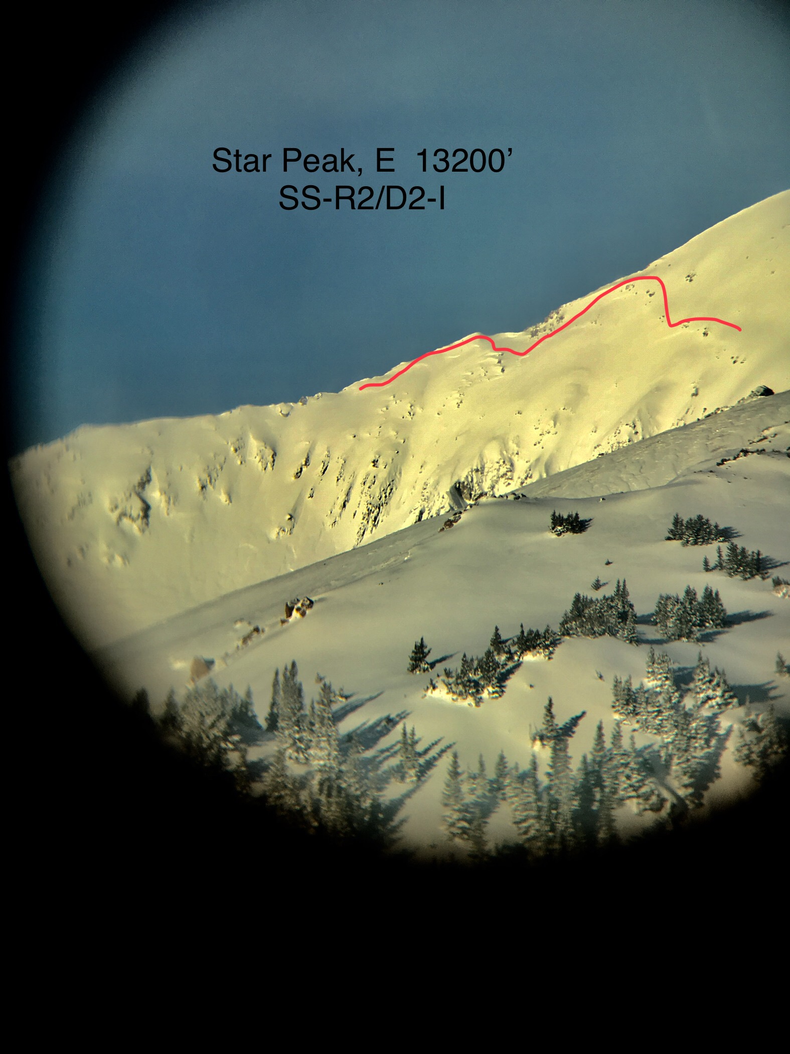 SS-N-R1-D2-I/O East aspect ~11,800′ Shallow wind/storm slab ran off of ridge and stepped down 1-2 feet lower in bowl(See picture)