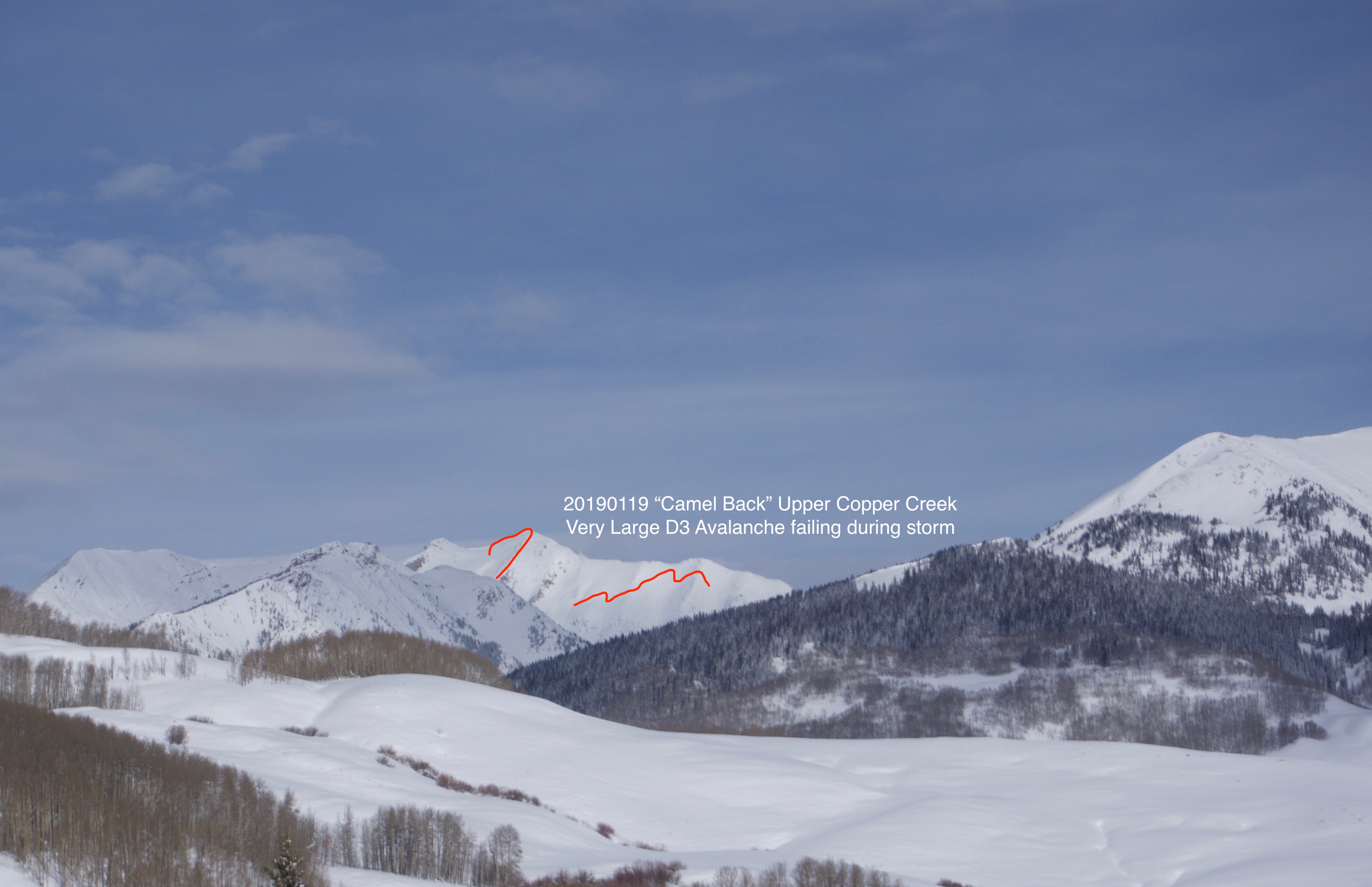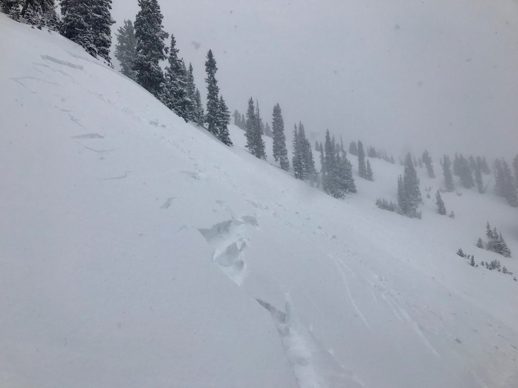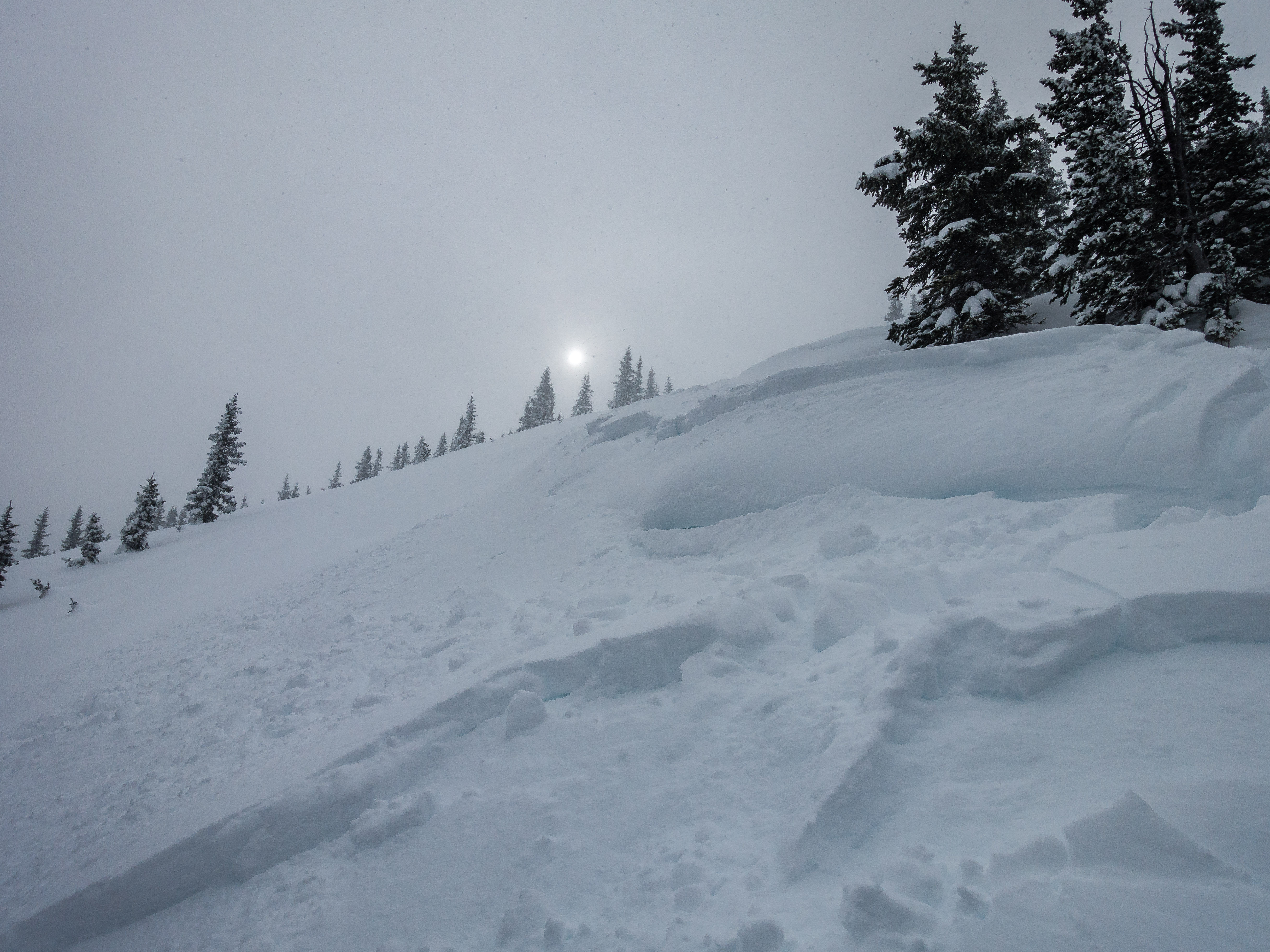 Snowpack: By and large the snowpack was not supportive to Rando skis until just below 10000 feet, and then it was supportive only intermittently. Experienced one large collapse at just over 10000′. Could not see any shooting cracks but collapse was large and loud enough to startle me. Only other collapses of the day were at lower elevations. These were much smaller feeling and did not seem to propagate more than a few inches past my ski tips. Dug a pit at 10200′ on NNW aspect BTL. Snow depth 100cm. Upper 20cm was new storm snow. Below that was soft “slab” 4-finger to fist hardness, softening with depth. At ~40cm above ground level it became coarse grained sugar from there on down. Compression test produced failure @ 20 cm below snow surface after 8 taps from the wrist. Failed again at about 50 cm below snow surface after 5 taps from the elbow, though second failure did not really sheer on any kind of bed surface. It was more like the “slab” just sort of crumbled.