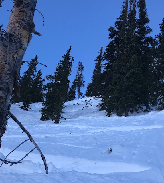Weather: Warm temps around -5 C all day. A thick cloud band passed by late morning, then mostly sunny until 3 pm when clouds built in again. Calm winds increased in the afternoon with gusts into the 20’s and a little moving snow.