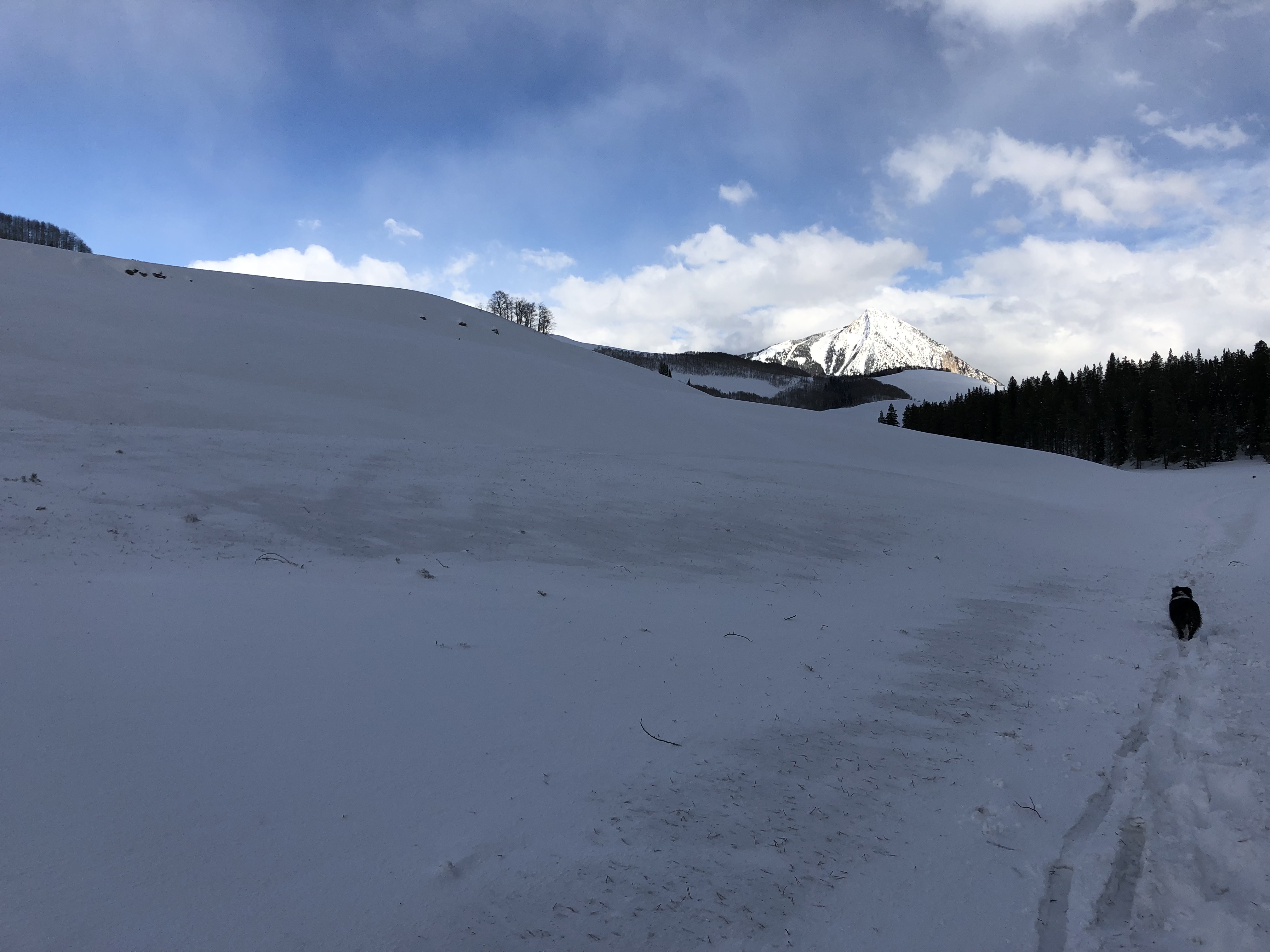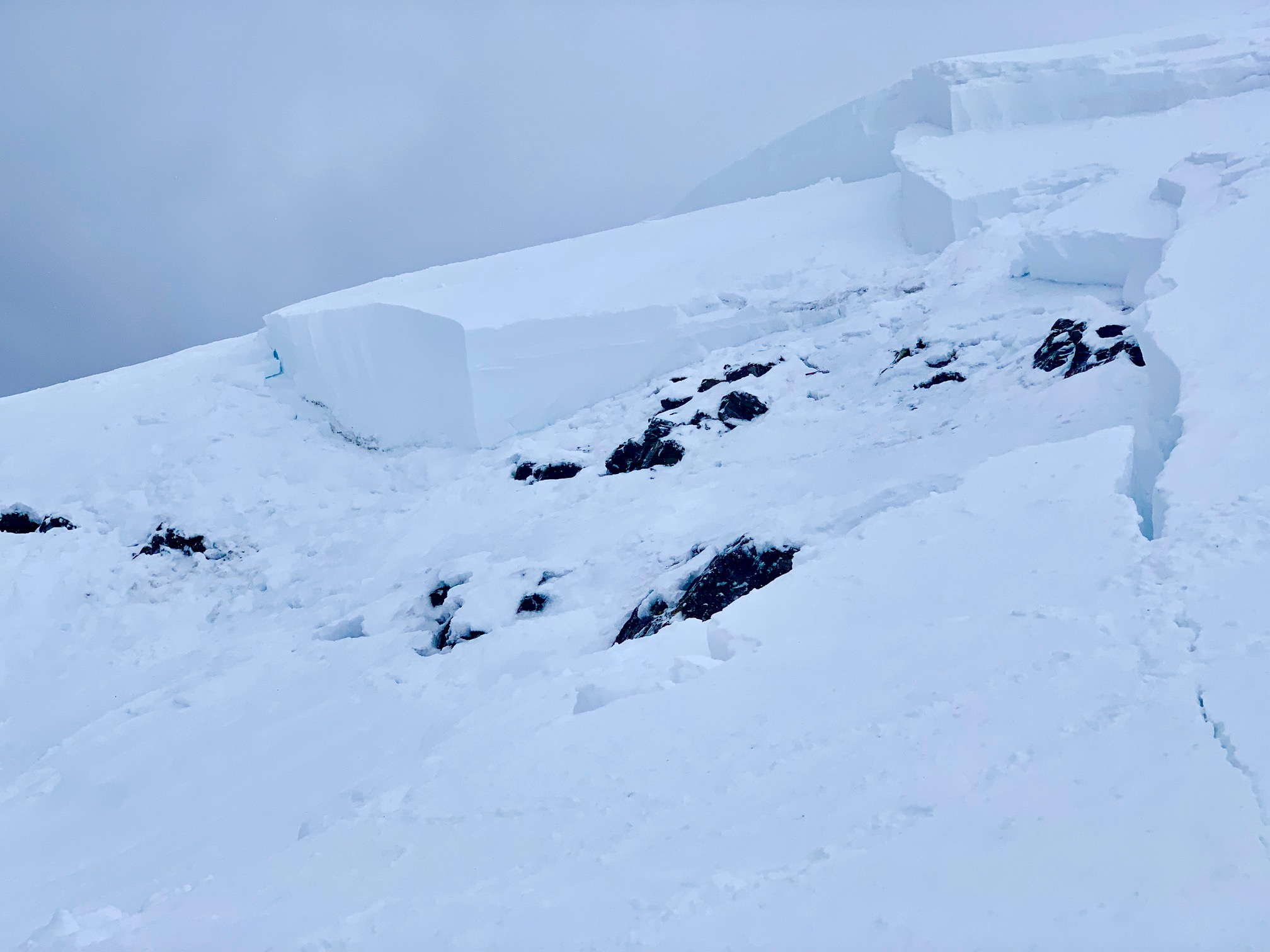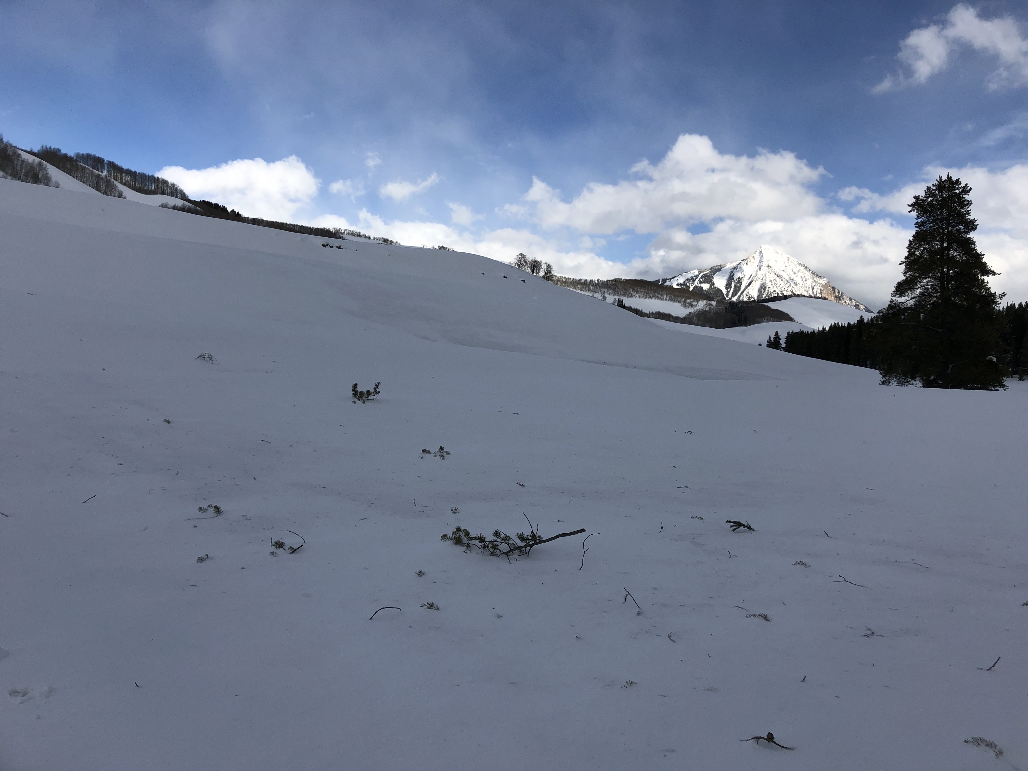 Weather: Partly to mostly cloudy skies during the midday with low-level clouds moving in and out limiting visibility. Light winds at valley bottom without any visible transport noticed at upper elevations during periods of good visibility.