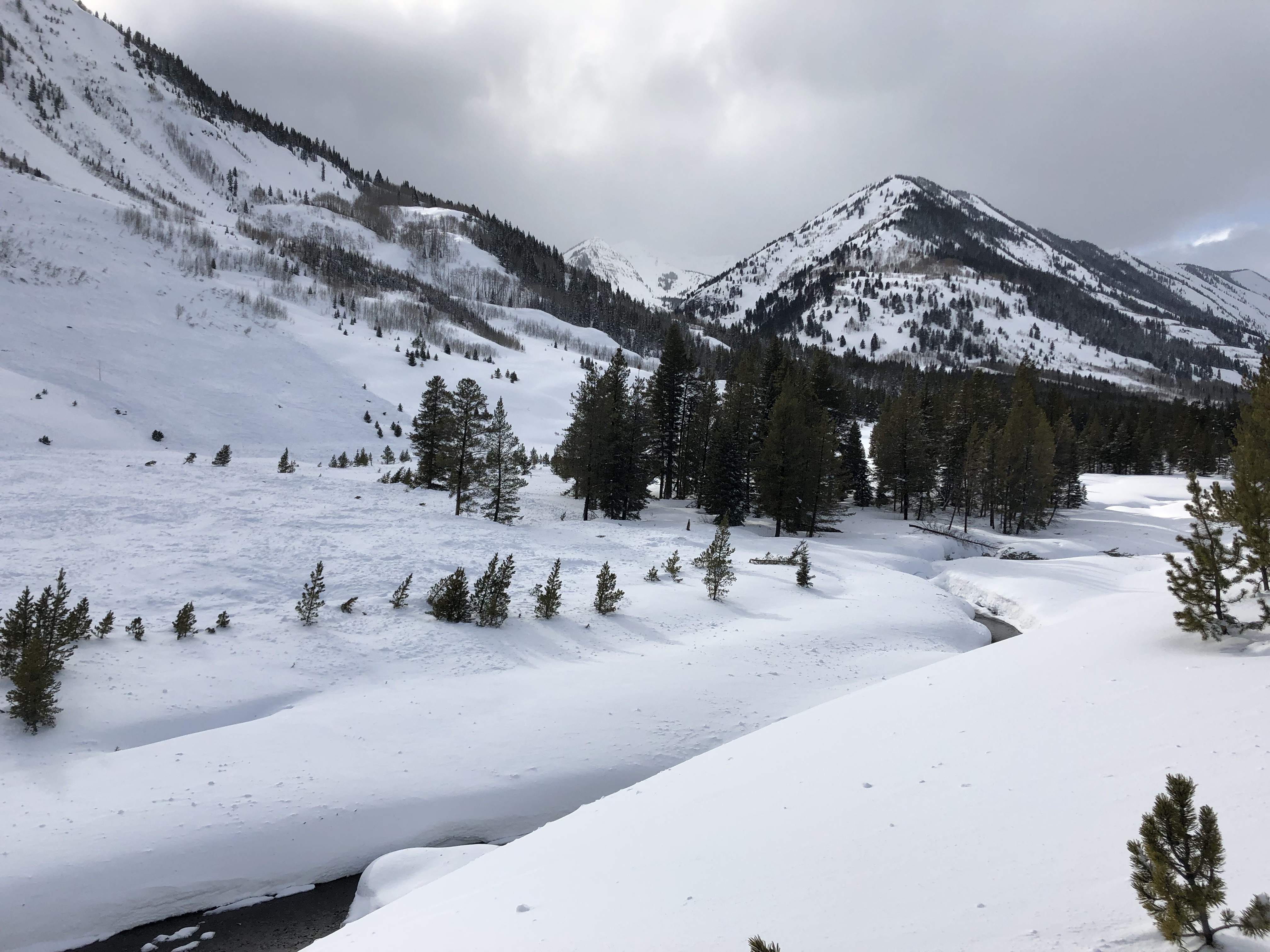 Snowpack:Â HS measurement at 9,600′ at valley bottom was an average of about 170cm. Top 75cm’s were storm snow since 2/28 with 4.6″SWE.