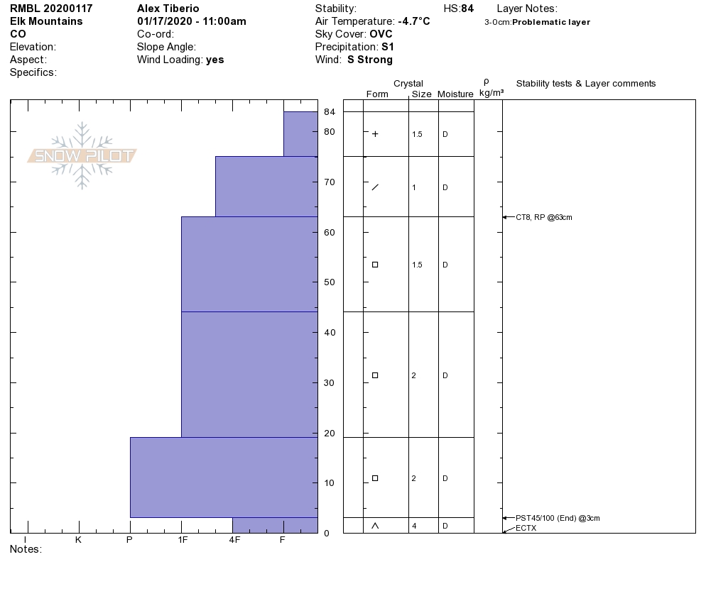 - Some roller balls and loose snow avalanches on steep rocky SE at 11,500.
