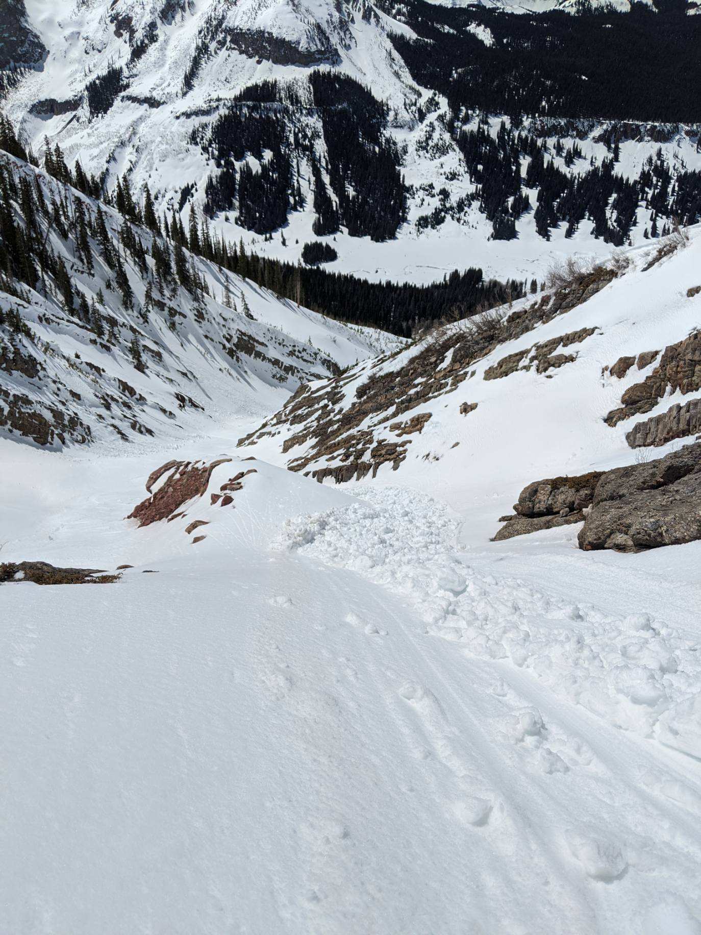 Avalanches: Lots of recent wet avalanche activity around the range. Rustlers Gulch area produced a number of Wet Slab’s the failed in the past couple of days on south and southwest aspects around 12,000′. A couple avalanches were D2 in size.