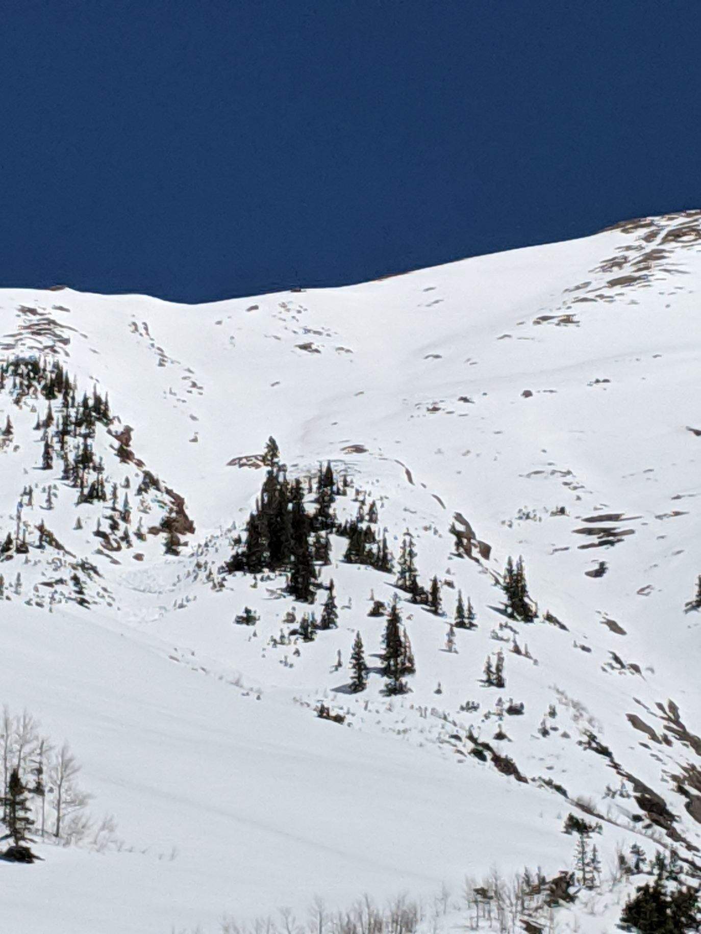 - Recent major shed cycle from steep, rocky southerly terrain above 12,000 feet on Cassie Peak. 4/10