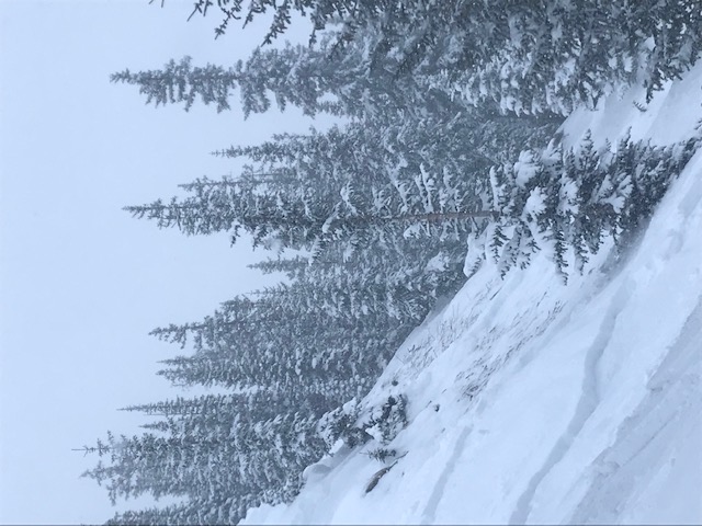 Weather: Temperatures in the teens with moderate gusty winds from the west. Storm total 9″ at 7 % and still snowing S2.