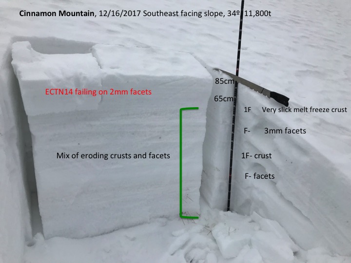 Snowpack: Tale of two different snowpacks at the moment. near and below treeline snowpack is shallow and generally completely rotten and faceted. Big grained depth hoar, total sandbox, with depths ranging from total dirt to 50cm.