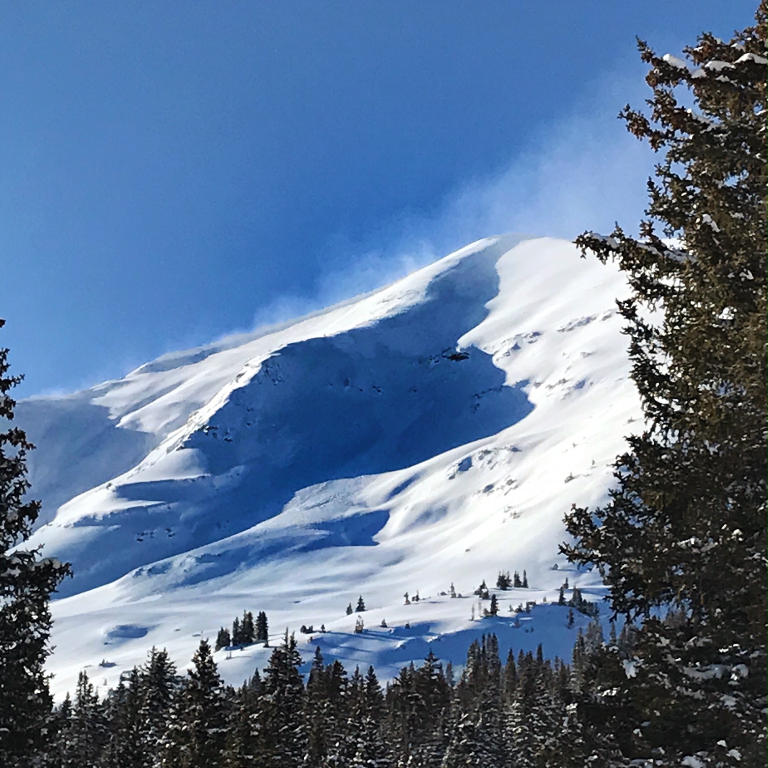 aside from some minor cracking this morning, stability seemed to increase despite dense, cakey snow. One D2 windslab naturally ran 1600 from continued SW wind loading (see photo). looked to be 300ft wide, 3-4′ deep and tapering. Potentially fragile cornice fall initiated. Explosive testing in Candys and Whiskey produce no results.