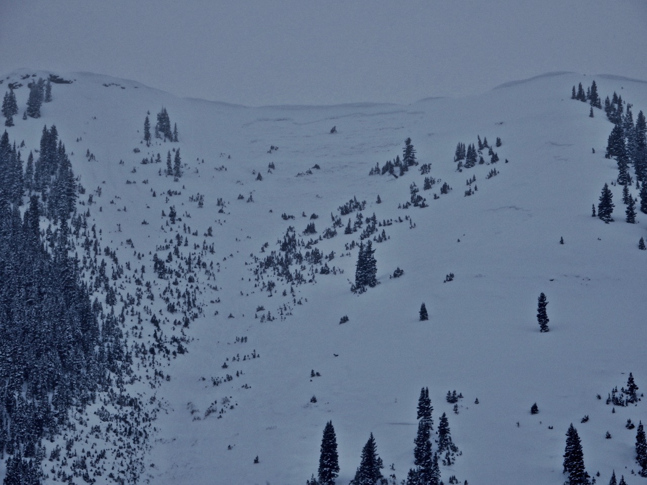 Generally poor visibility, but avalanche problems seemed spot on. Observed at least two D2 Persistent Slab avalanches that ran naturally, and numerous small Wind Slabs. One off Schuykill Ridge, one out of the Banana (patrol will provide more detail today).