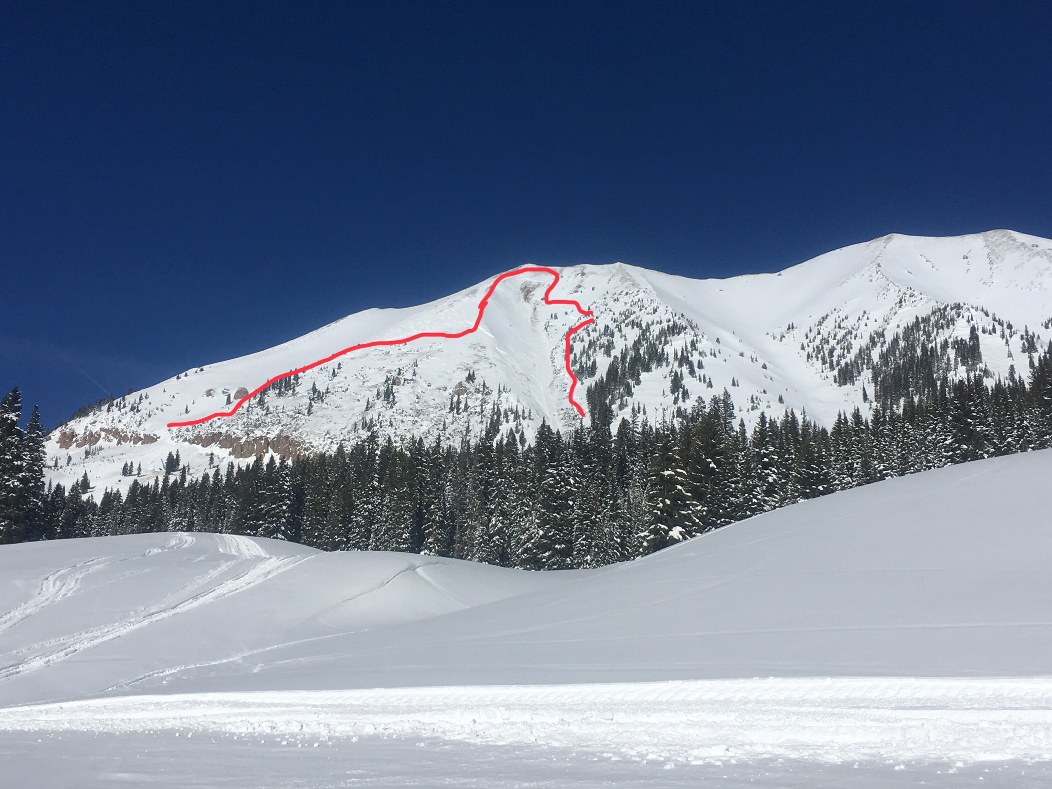 Gothic West Side. HS-N-R3.5-D3.5-O. Ran ~ midday 3/14. Broke at the ground in a large portion of the path and ran to the bench just above the road covering recent snow-mo tracks.Â