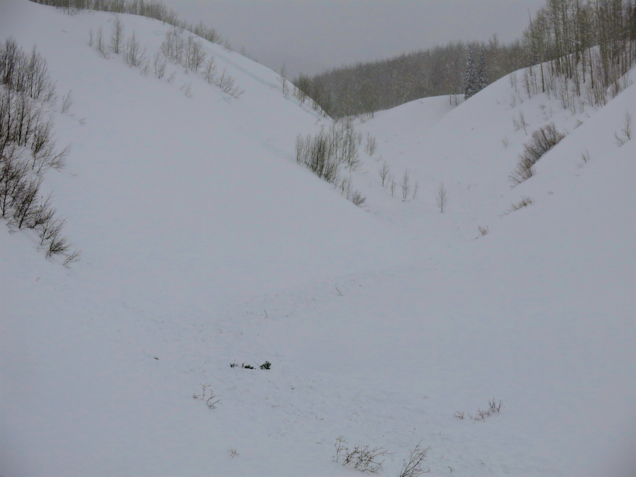 Also, a couple small storm slab avalanches where seen along Kebler Pass Rd near Crested Butte. 5 to 6″ deep failing on 40 degree, northerly facing terrain.