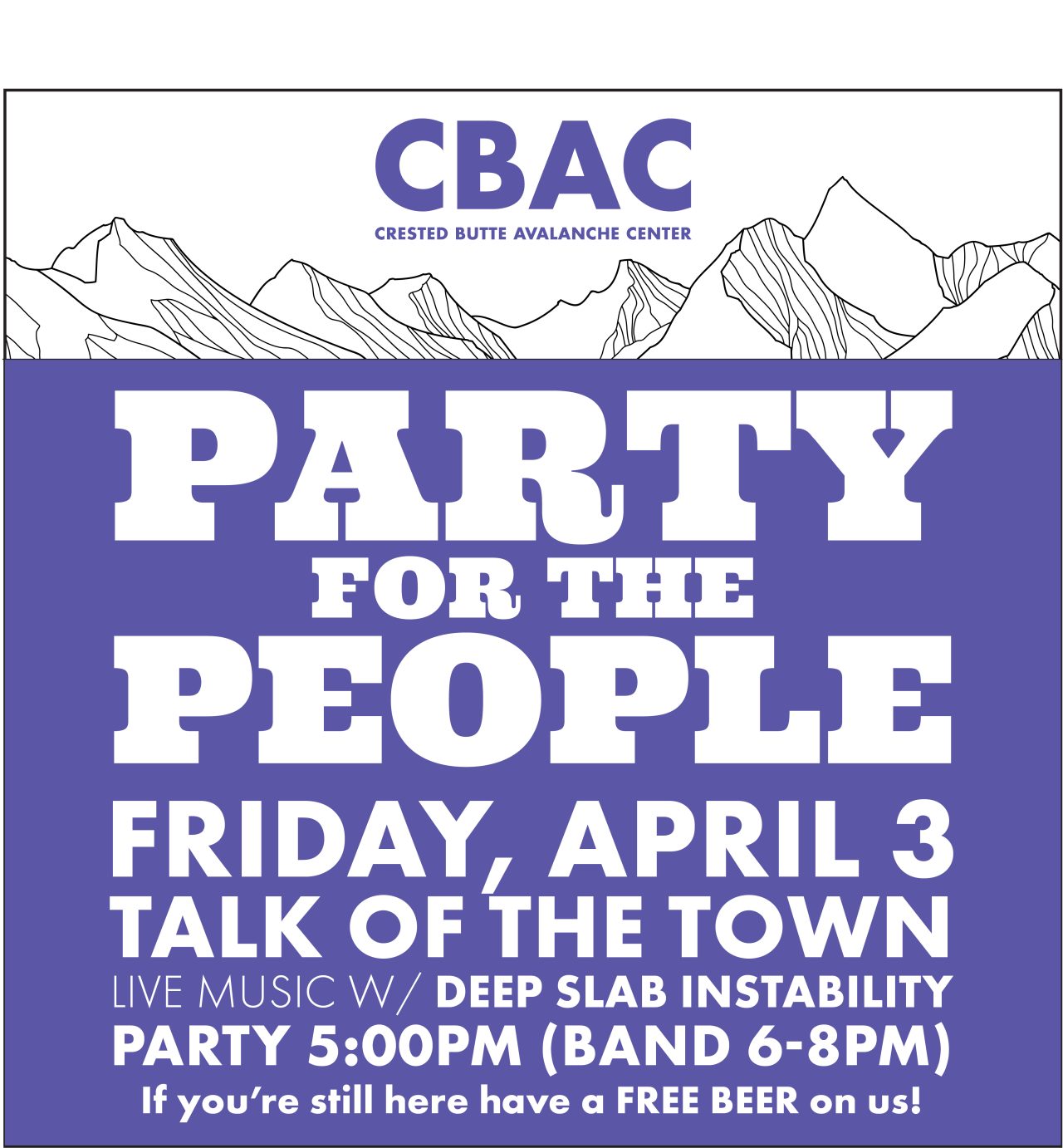 Party for the People! CBAC March 30, 2026Announcements, Avi Blog, Backcountry Notes, Events Beer, music, and stoke for a deeper season next winter. See you there!