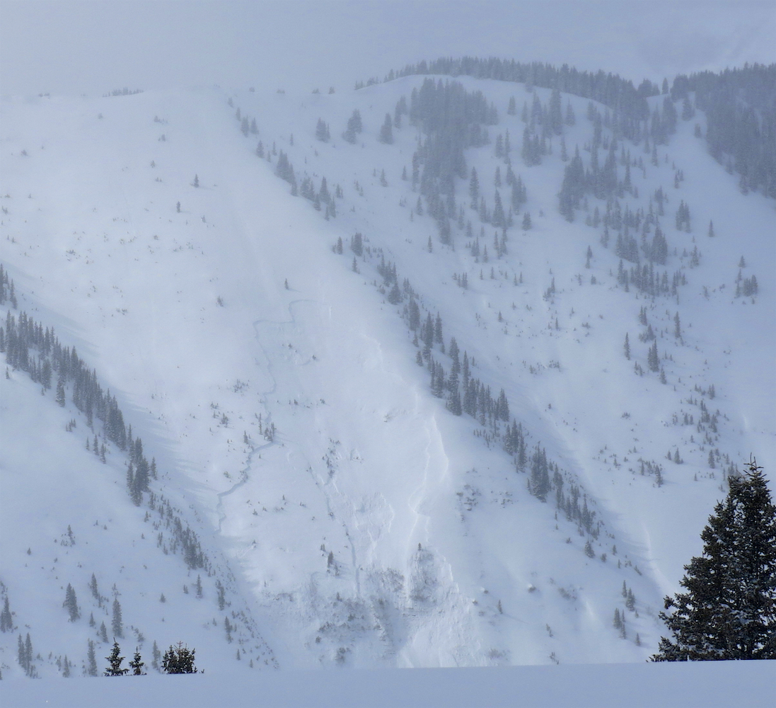 Another fresh very large avalanche was viewed on billy bar’s Camara near Schofield Pass. This avalanche failed on a cross-loaded SE facing slope above treeline, and propagated widely across a more south facing bowl.