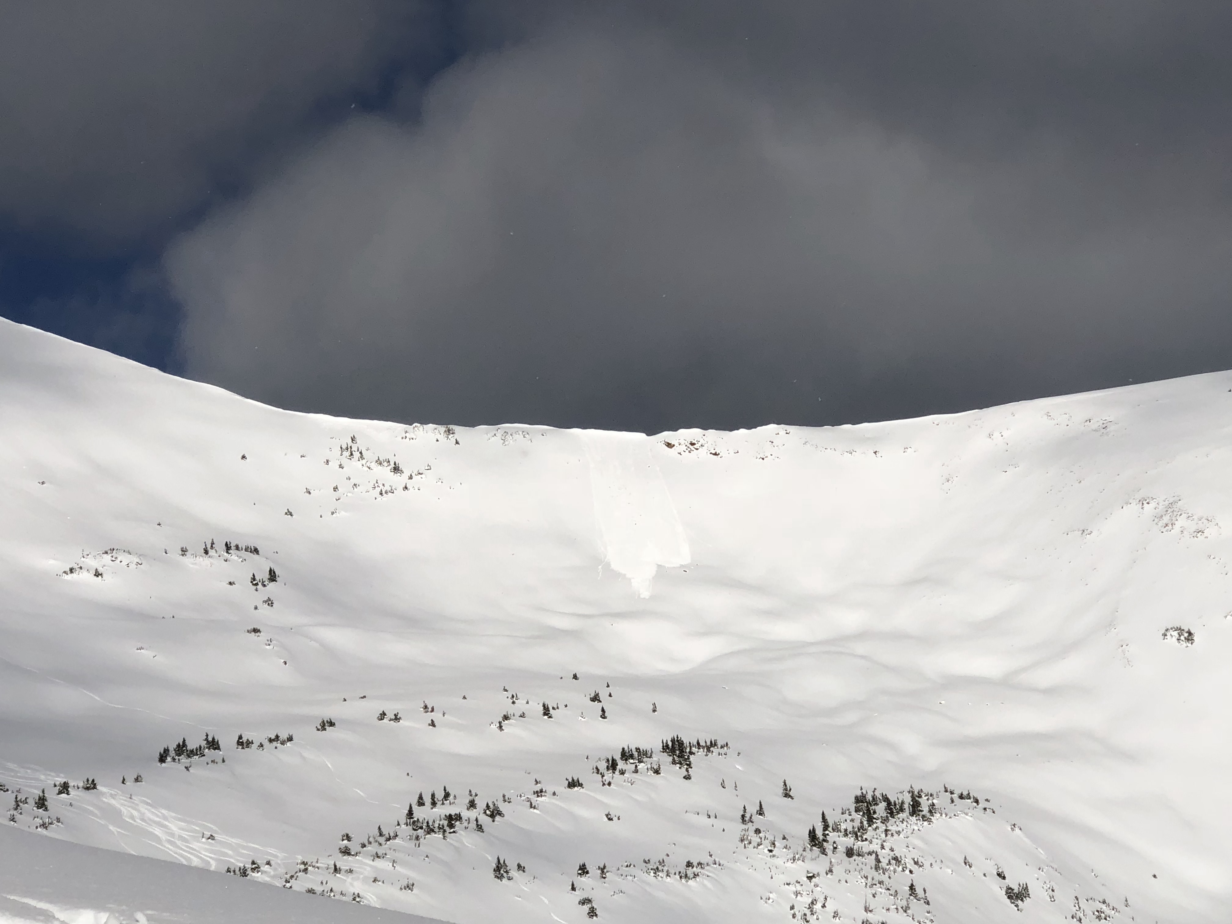 We observed a R1, D1 slide on the saddle in-between the summit of Red Lady and Coon Basin on a steep south aspect.
