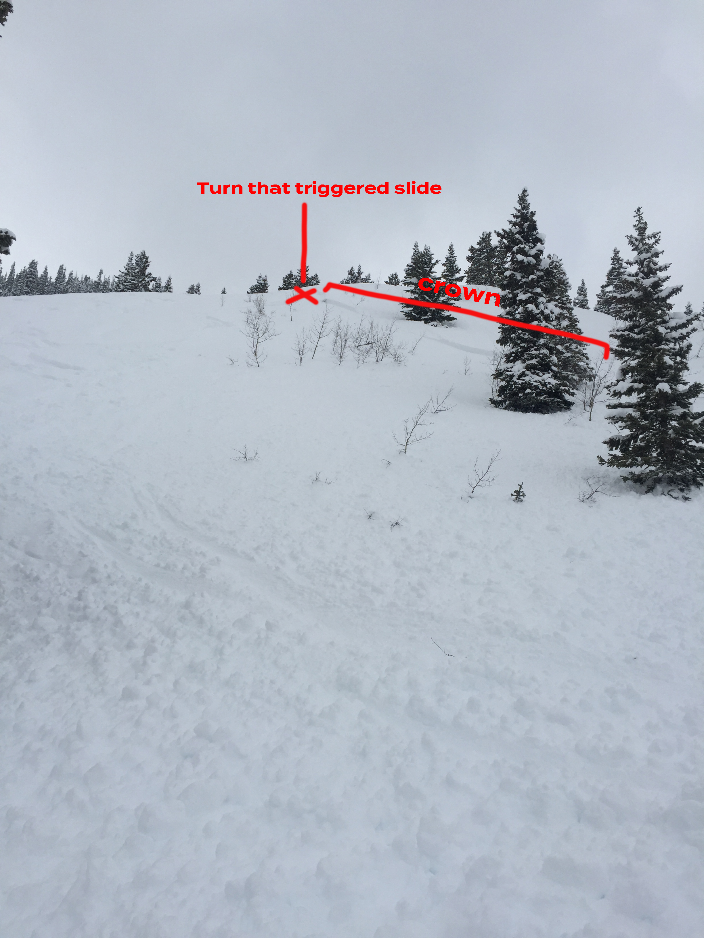 Weather: high-20’s to just below freezing around time of slide. Overcast all day with a few very brief breaks in the clouds but no full-on sun. Some scattered, very light snow with less than an inch of accumulation from 10 am to 3 pm.