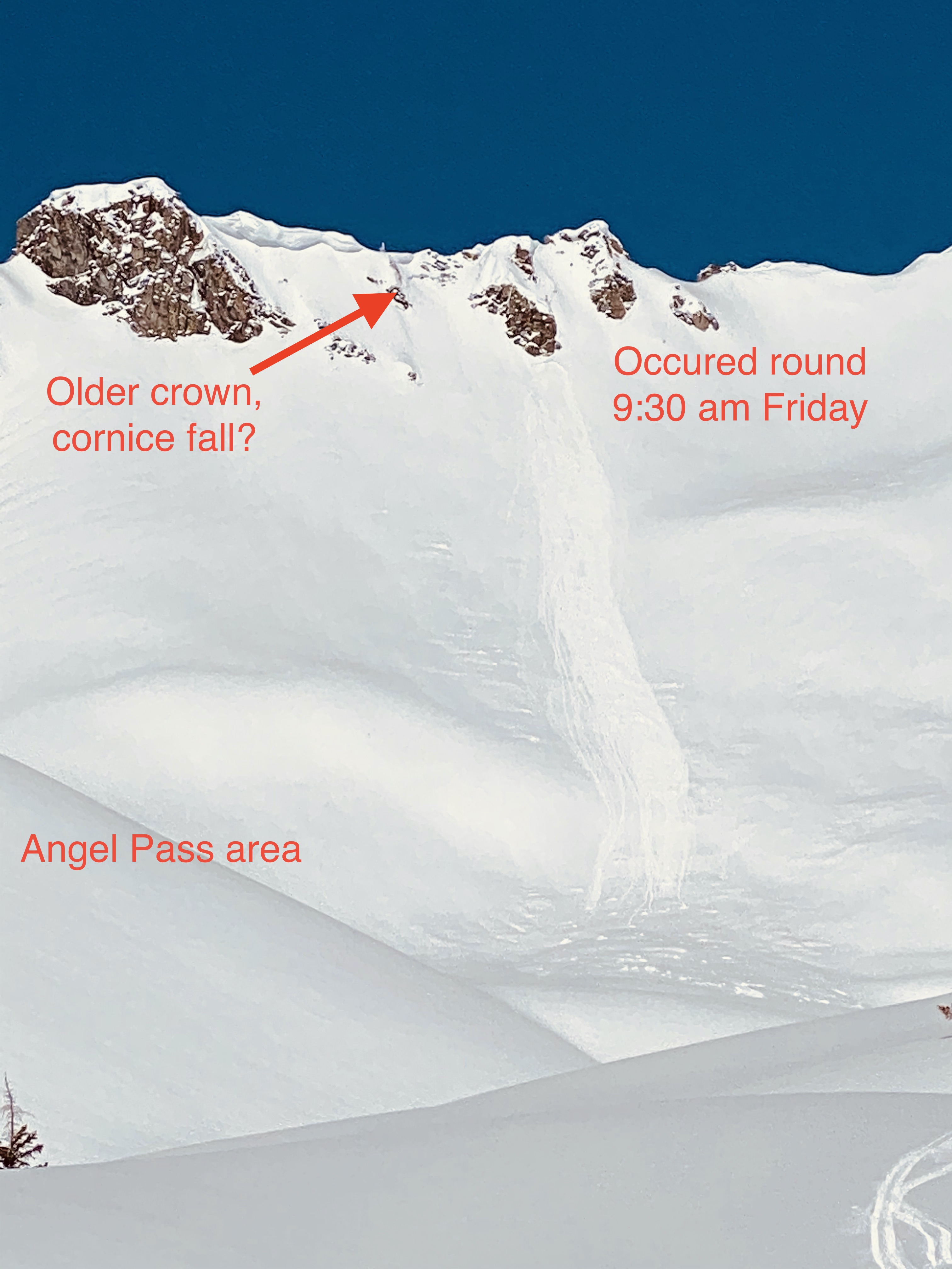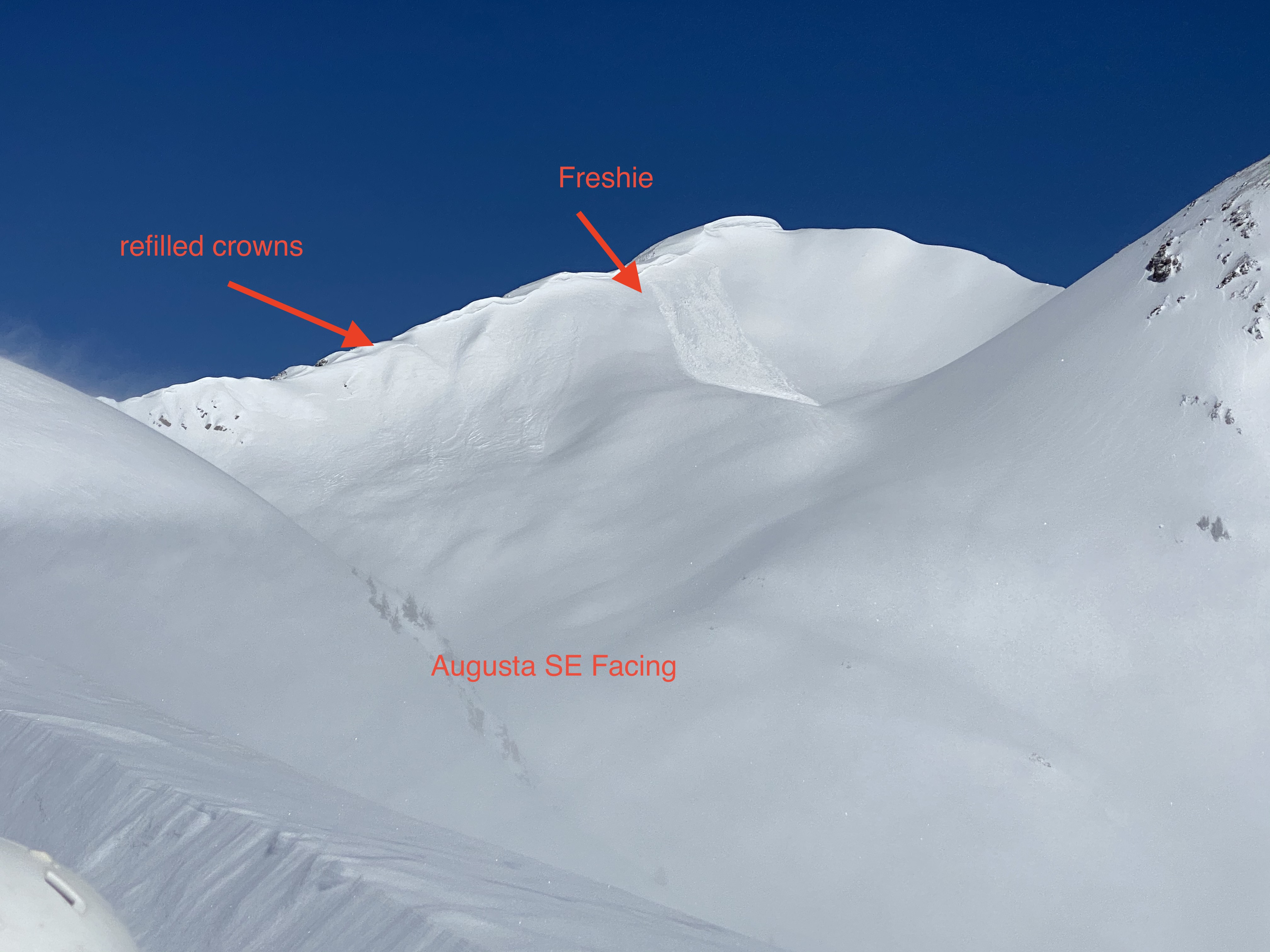 -Richmond/Angle Pass and Augusta both showed signs of widely propagating mid-storm avalanches on easterly aspects below cornices, now refilled