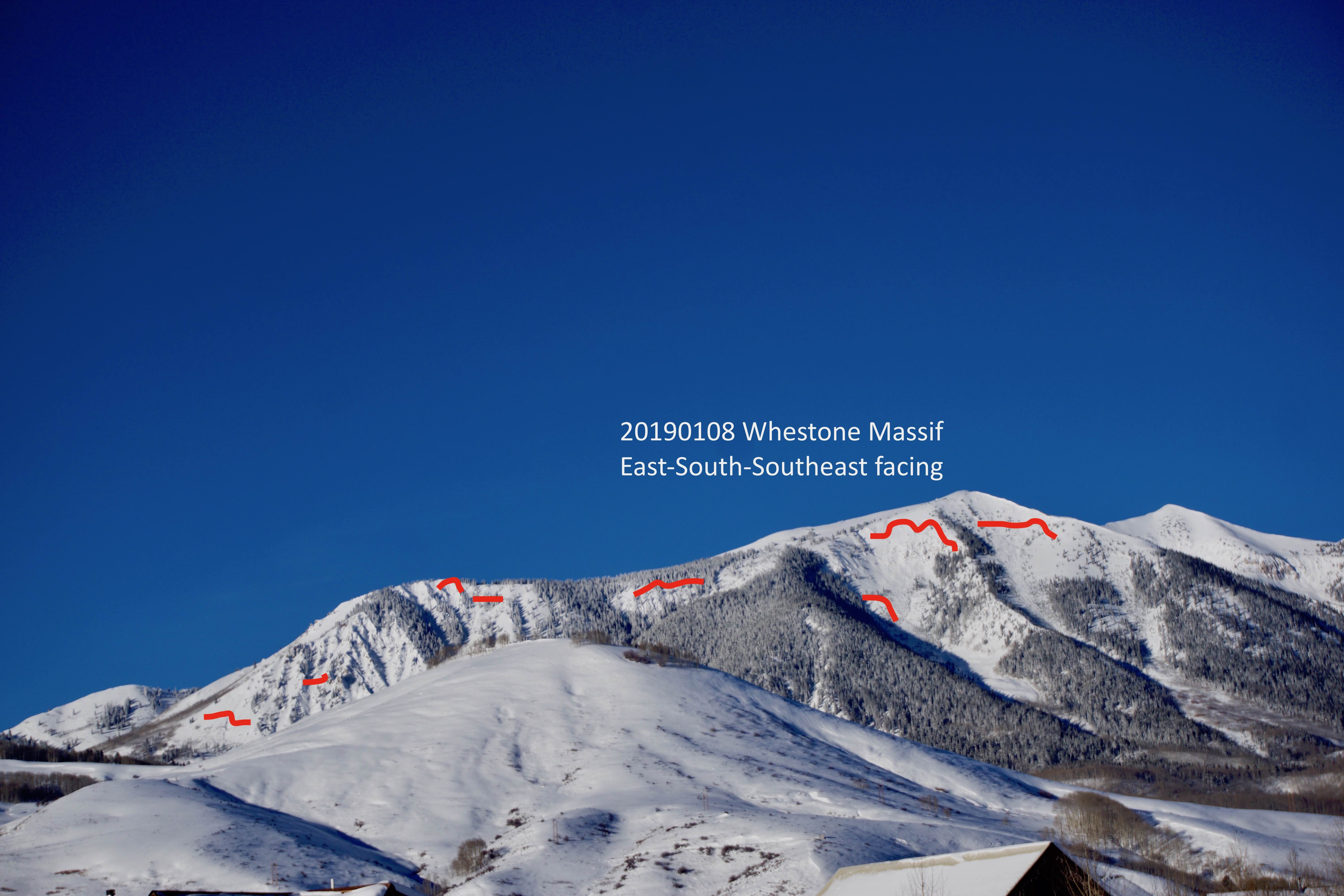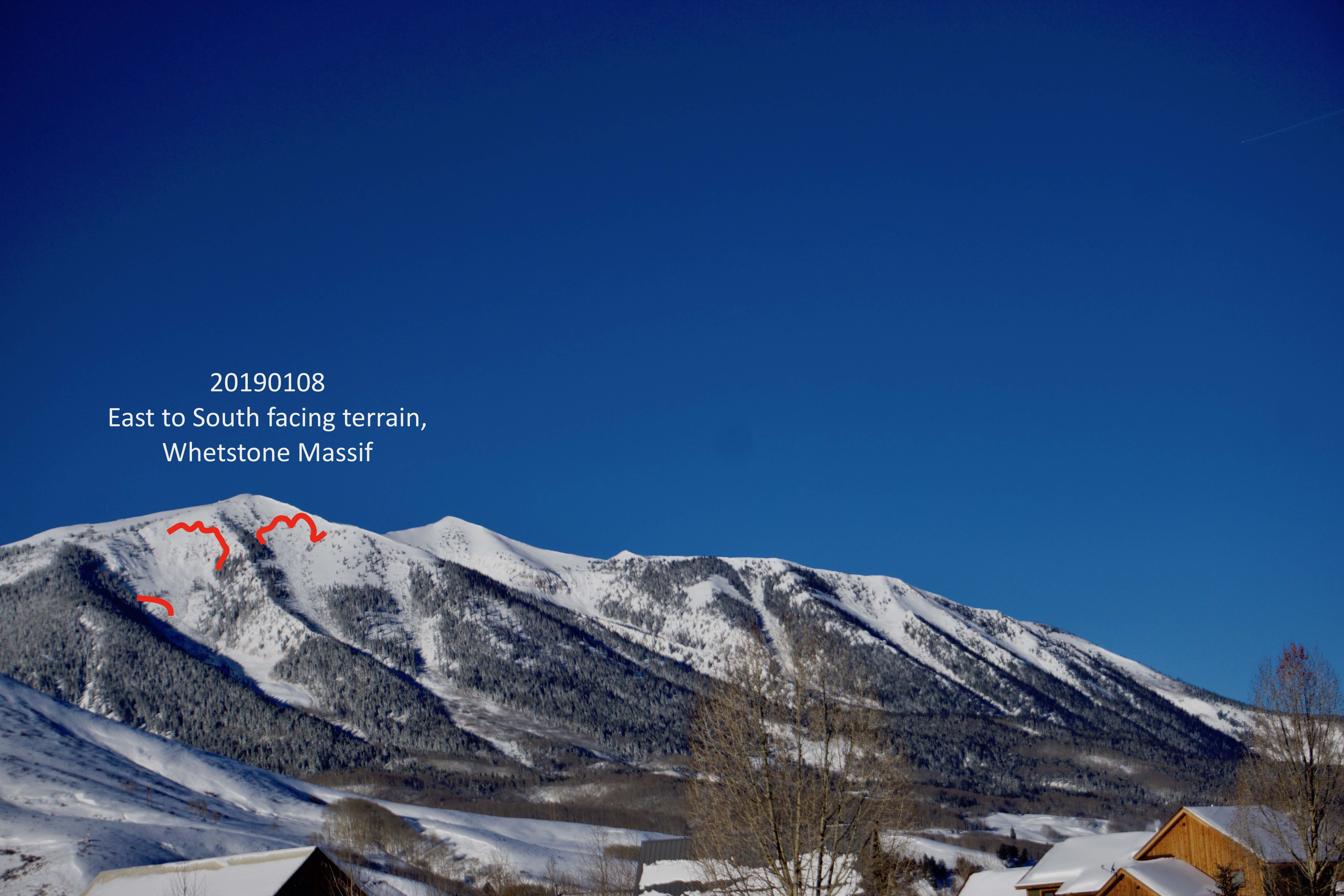 Here are avalanches observed over the last 24hrs as visibility has allowed on east to southeasterly facing terrain on Gibson Ridge and Whetstone. Seems that the near to below treeline areas may hold most recent evidence of natural avalanche cycle. Likely due to weakest snow prior to storm.